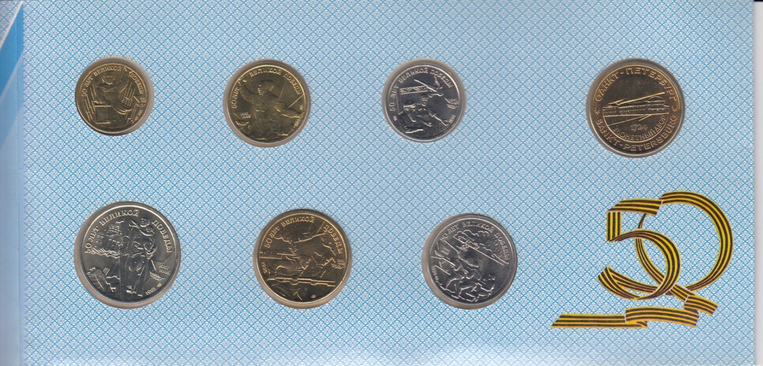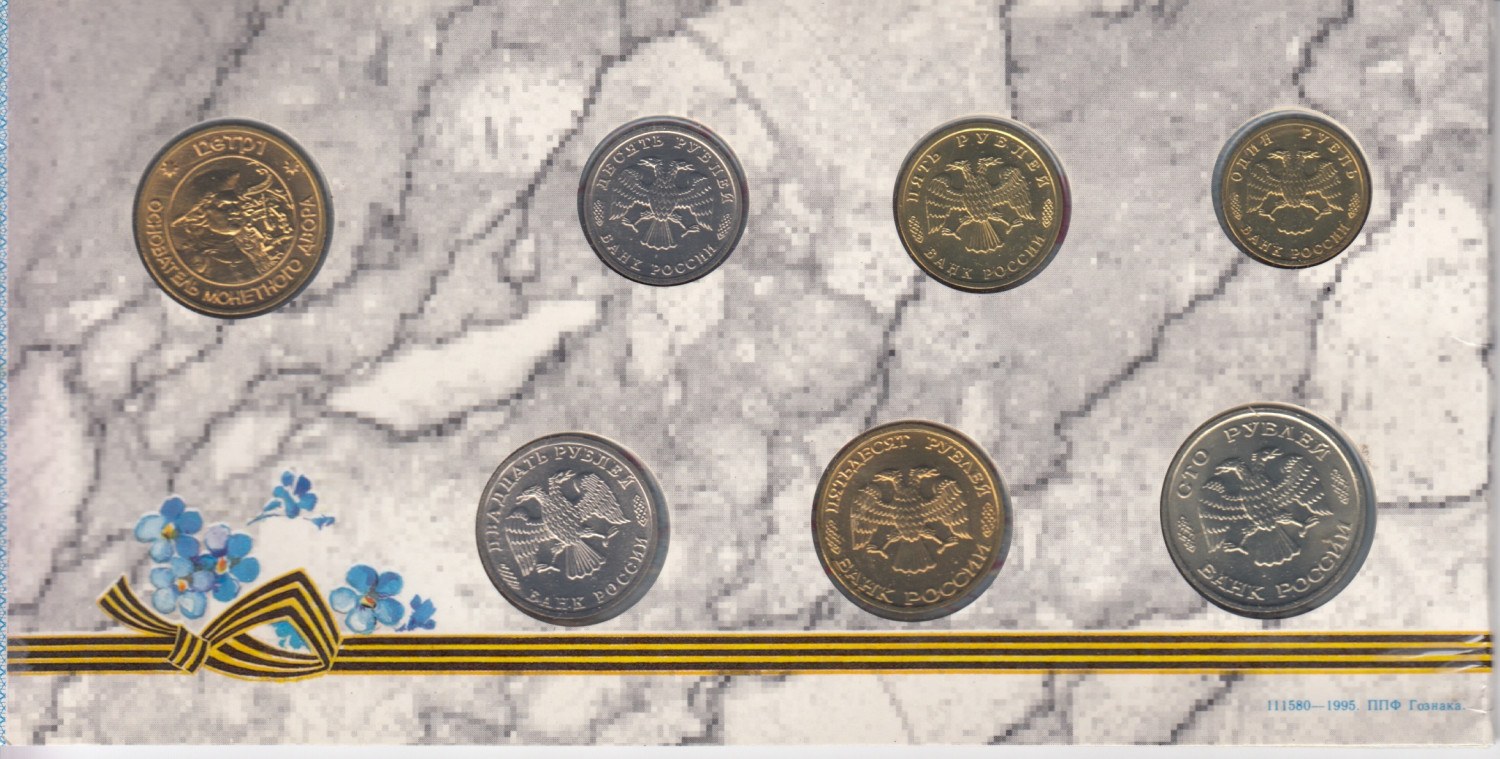 Russia Bank set 1995 (1, 5, 10, 25, 50, 100 Roubles and Token of the SPb Mint) (7) - 50th Anniversary of Victory in the Great Patriotic War (1941-1945)