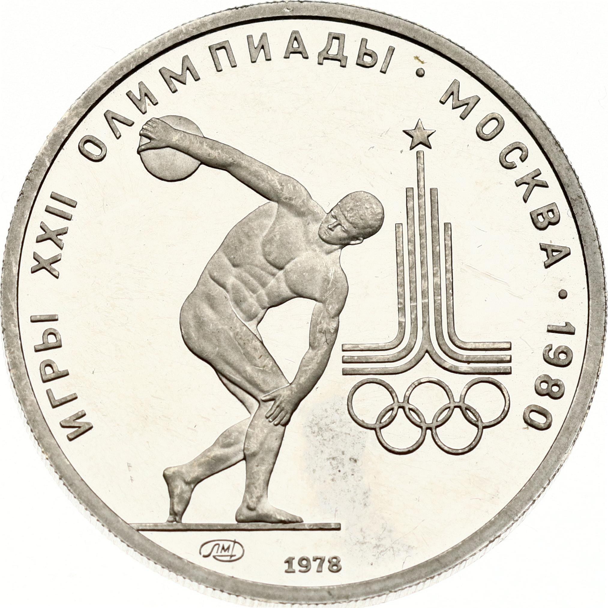 Russia, USSR 150 Roubles 1978 ЛМД, Discus. 1980 Summer Olympics, Moscow. Platinum .999, 15.60 g. Y 163, Fr 183.