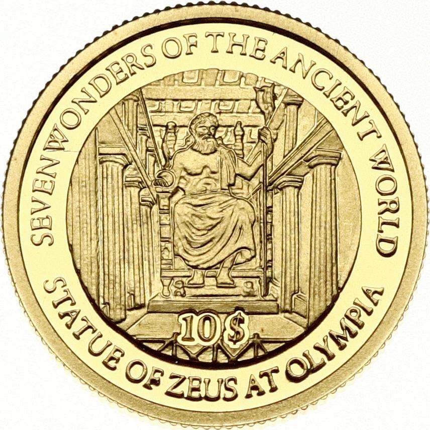 Solomon Islands. Elizabeth II (1952-2022). 10 Dollars 2009 Statue of Zeus. Series: Seven Wonders of the Ancient World. Gold .999, 1 g. KM-106