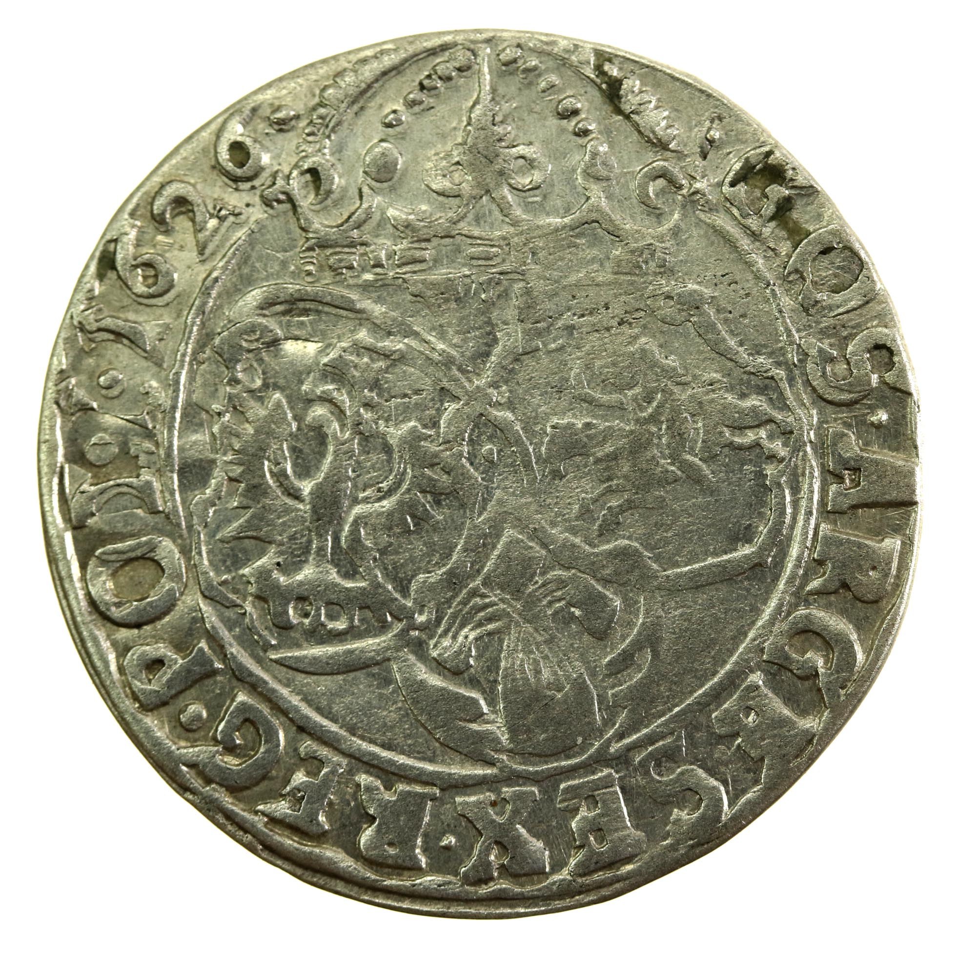 Zygmunt III Waza, Szóstak 1626, Kraków. Ciekawy egzemplarz z rzadkim błędem podwójnego bicia. Stan 2-. Bardzo dobrze zachowana moneta. Literatura: Kopicki 1264