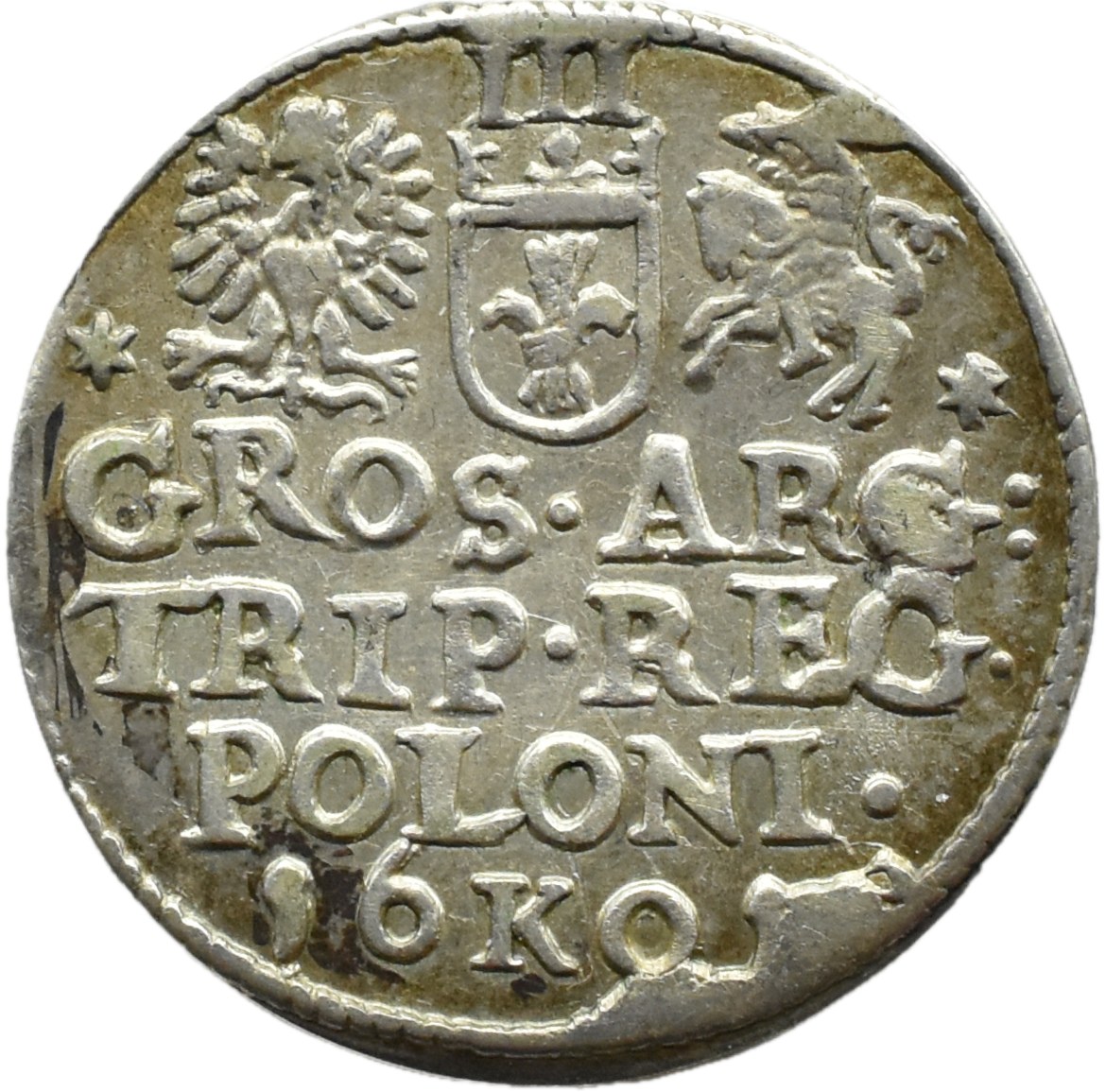 drugi rocznik krakowskich trojaków, numizmat z bardzo ładną patyną i dobrymi detalami