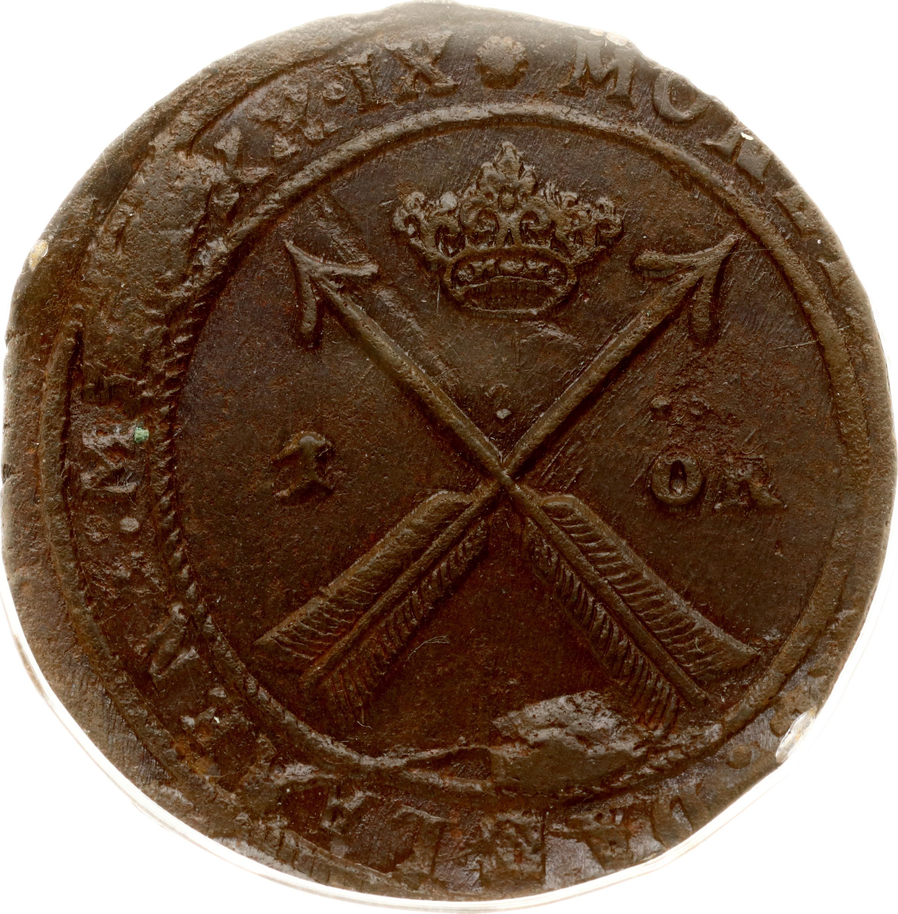 Sweden. Gustavus II Adolphus (1611-1632). 1 Ore 1629,MDCXXIX. Copper. KM 115. PCGS MS 62 BN. TOP POP.
