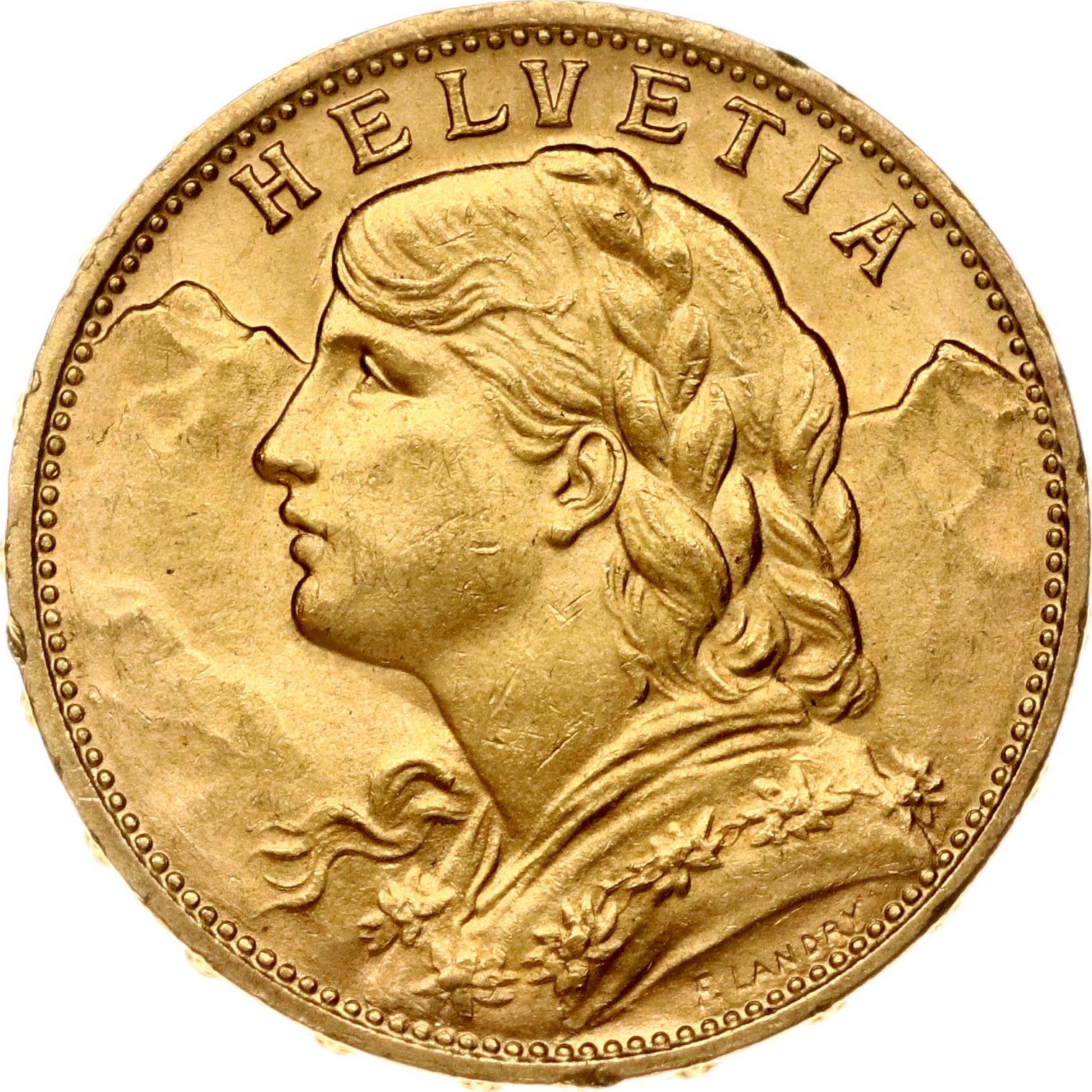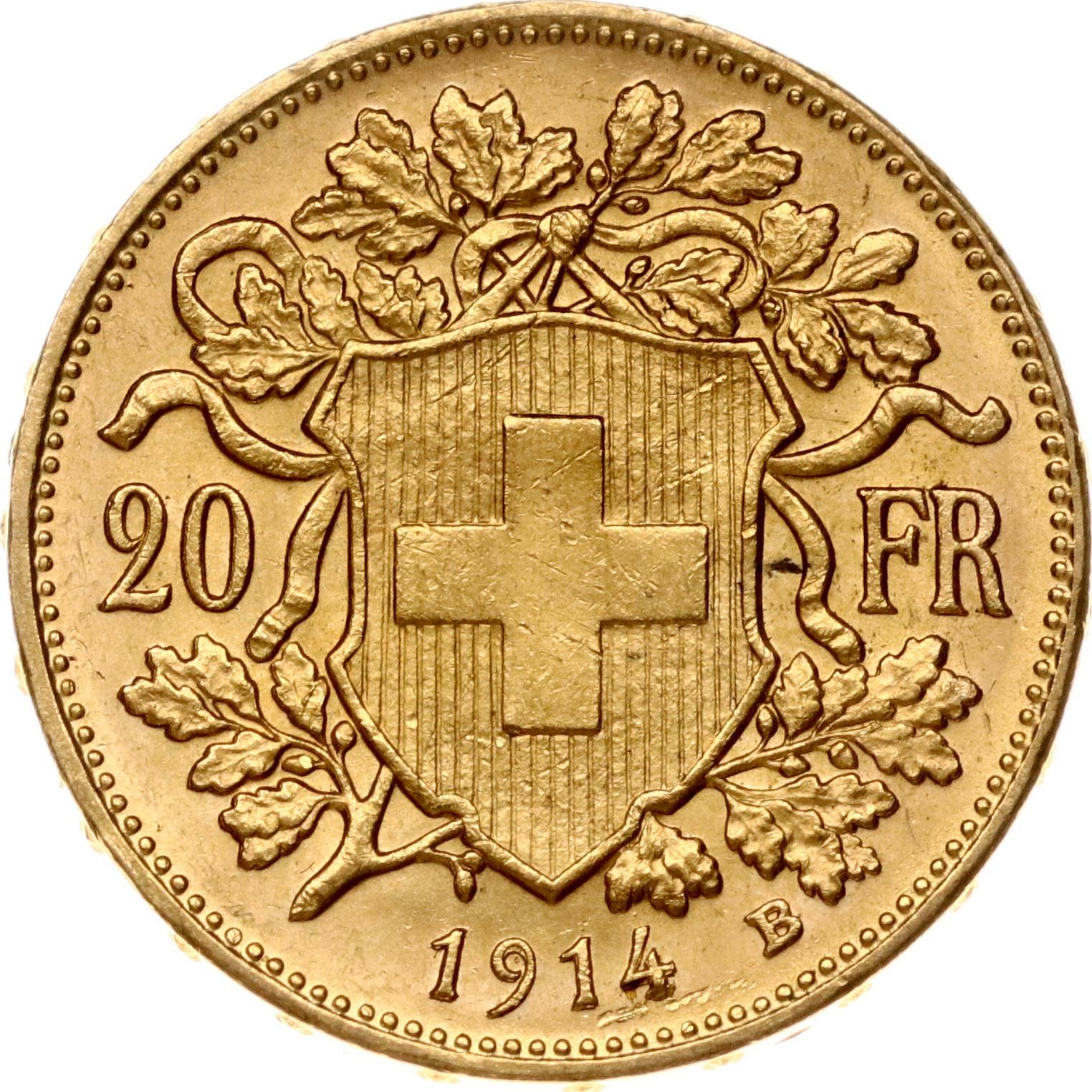Switzerland 20 Francs 1914 B Vreneli