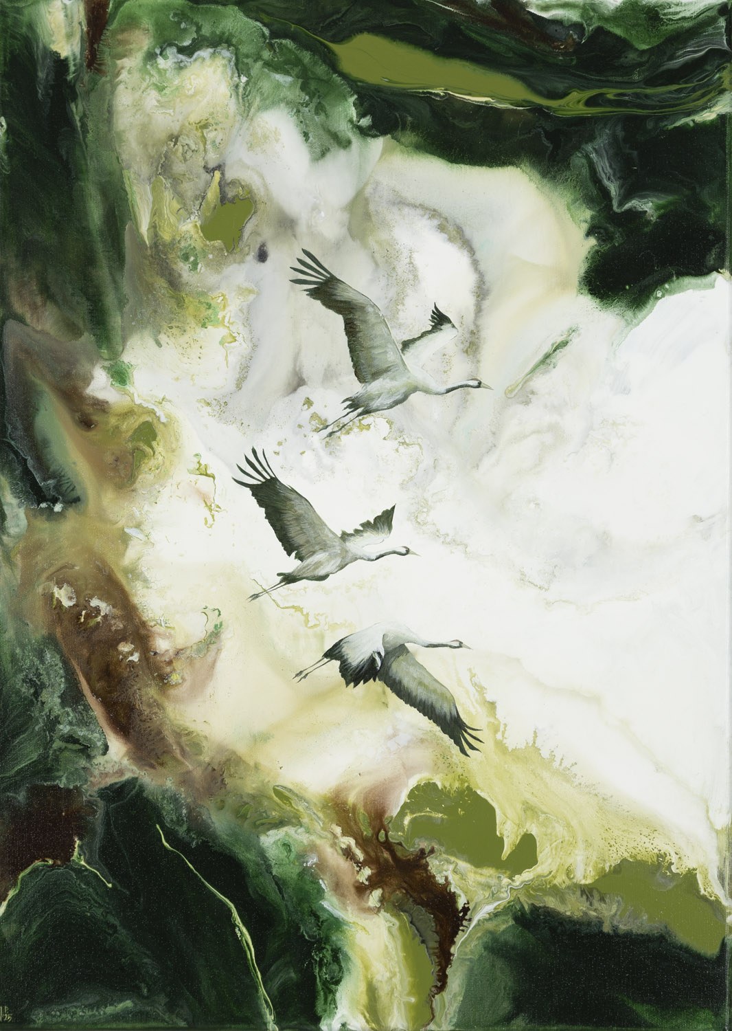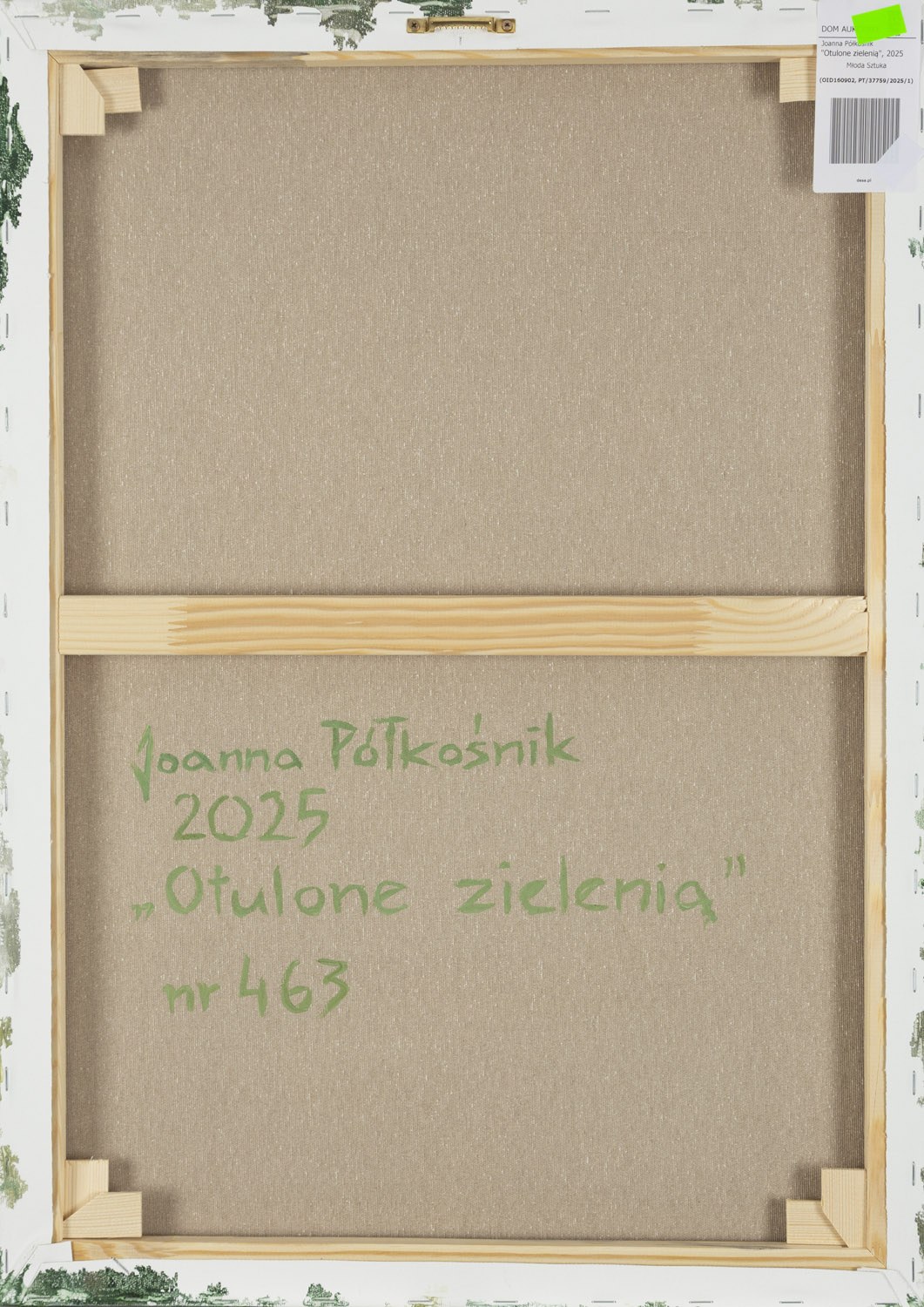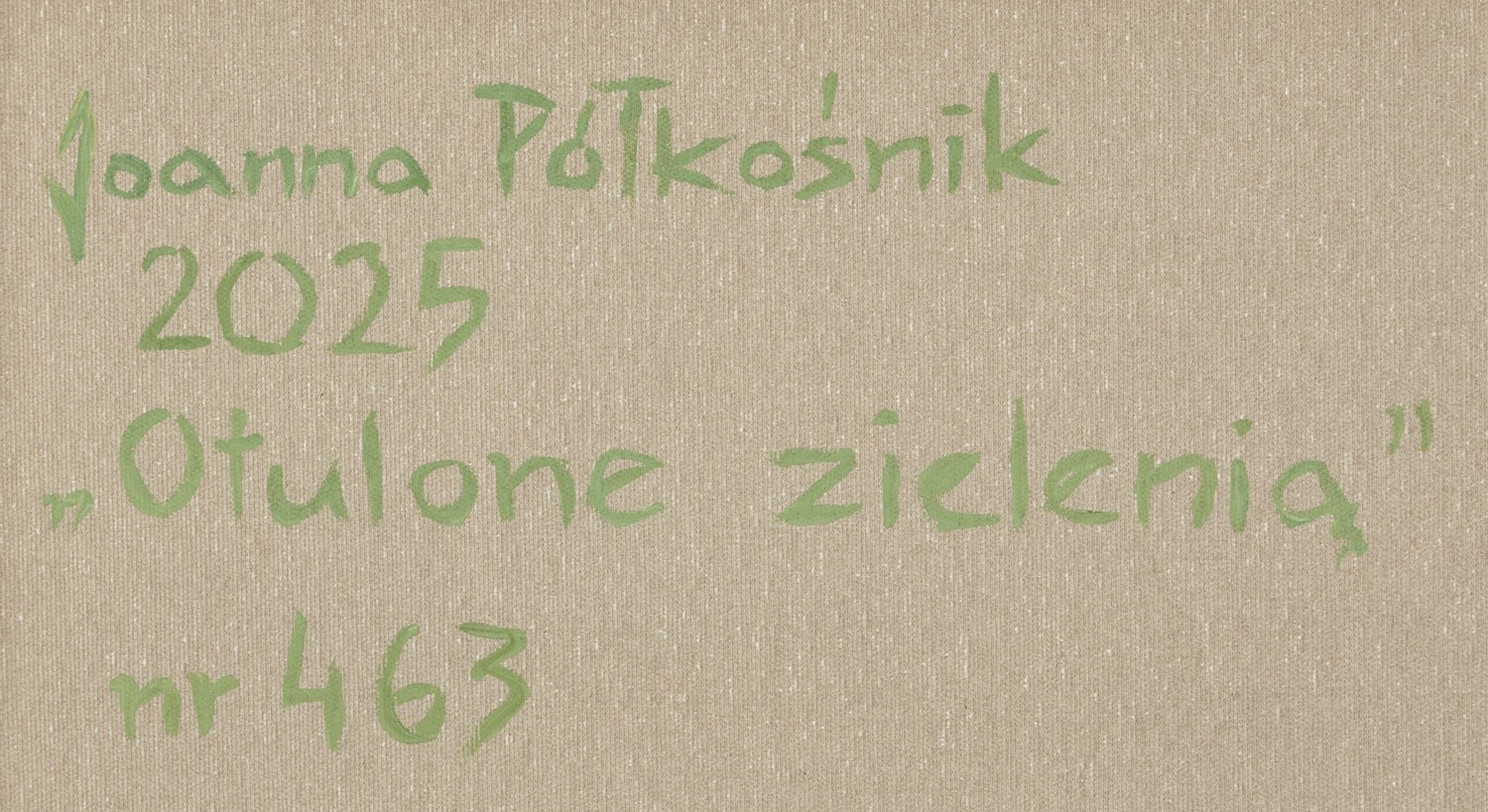 sygnowany, datowany i opisany na odwrociu: 'Joanna Półkośnik | 2025 | "Otulone zielenią" | nr 463'