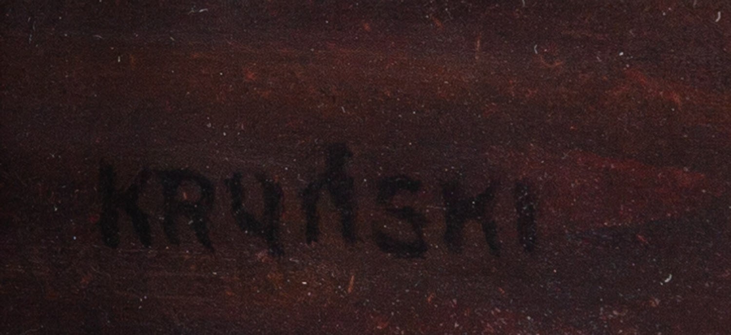 na odwrociu nalepka wystawowa z Muzeum Podkarpackiego w Krośnie