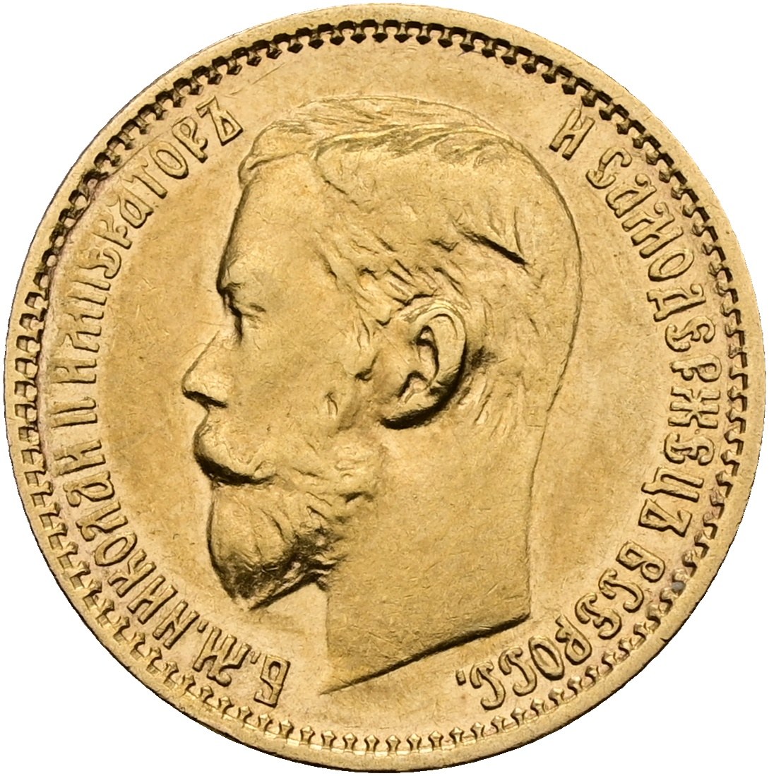 Goldmünze 5 Rubel 1899 ЭБ (Fr. 180, Bitkin 23), St. Petersburg, Nikolaus II (1894–1917).