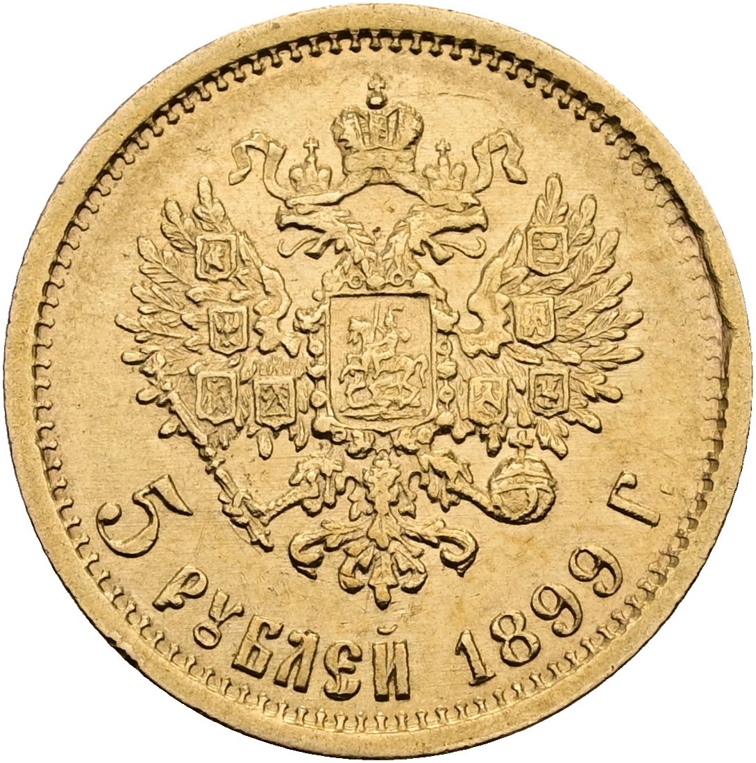 Russland / Russisches Kaiserreich - Goldmünze 5 Rubel 1899 ЭБ - St. Petersburg, Zar Nikolaus II (1894-1917) - Russia, 5 Roubles