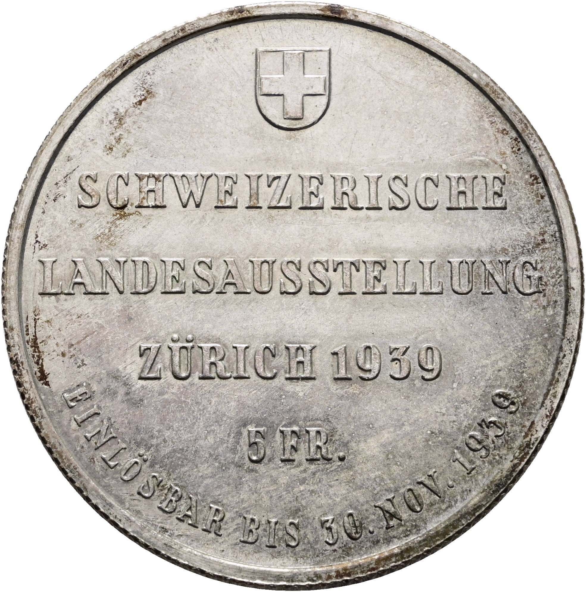 Gedenkmünze 5 Franken 1939, Schweizerische Landesausstellung Zürich. Auflage nur 60'000 Exemplare