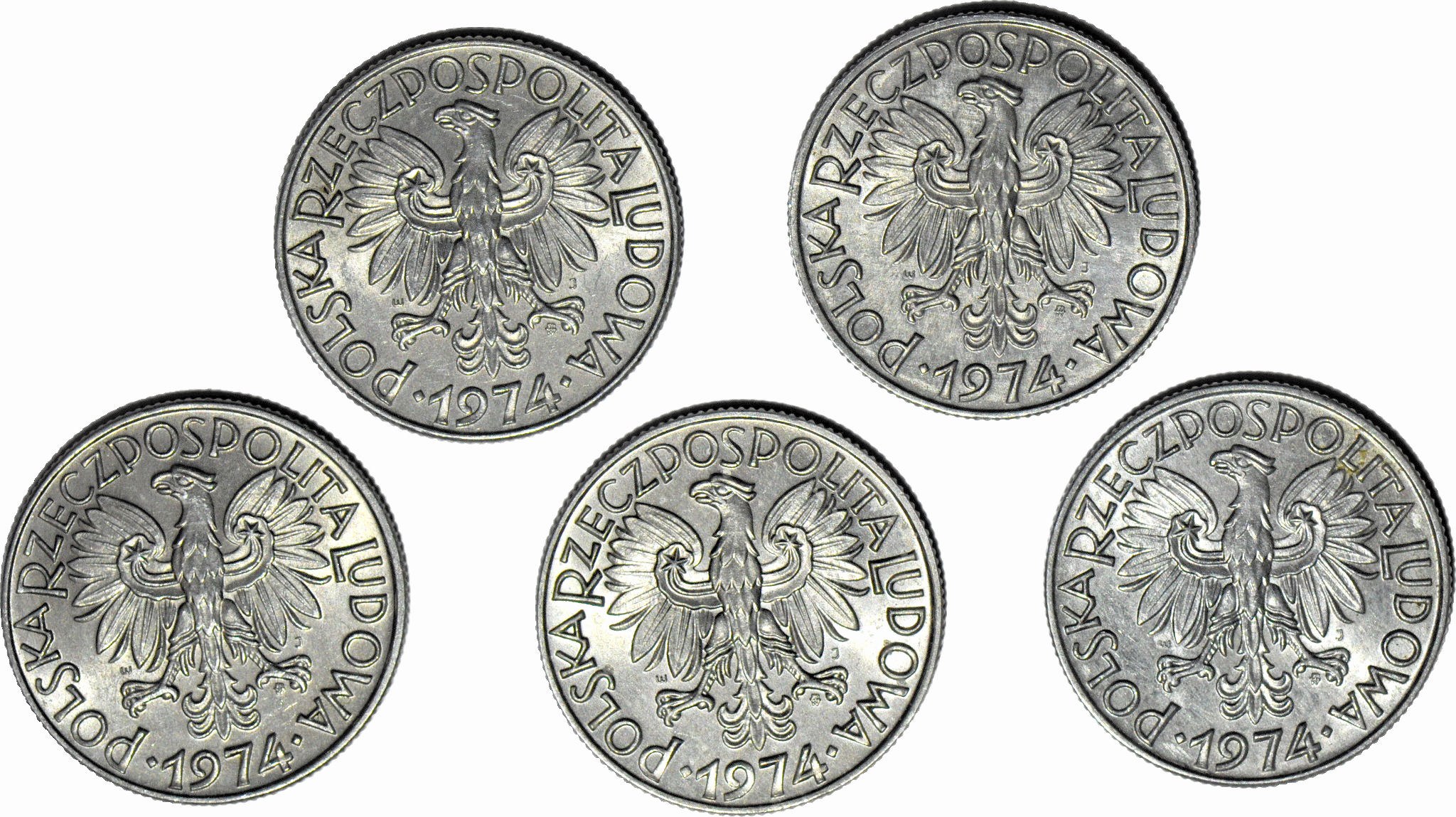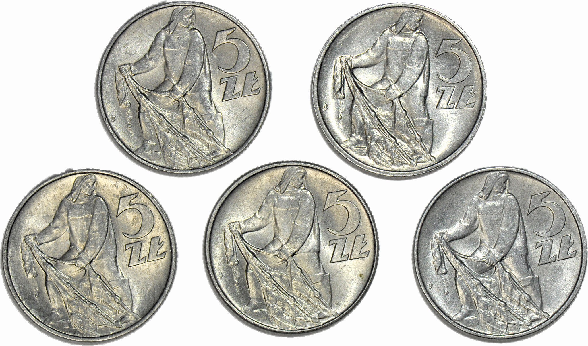 5 złotych 1974, Rybak, mennicze, zestaw 5 szt.