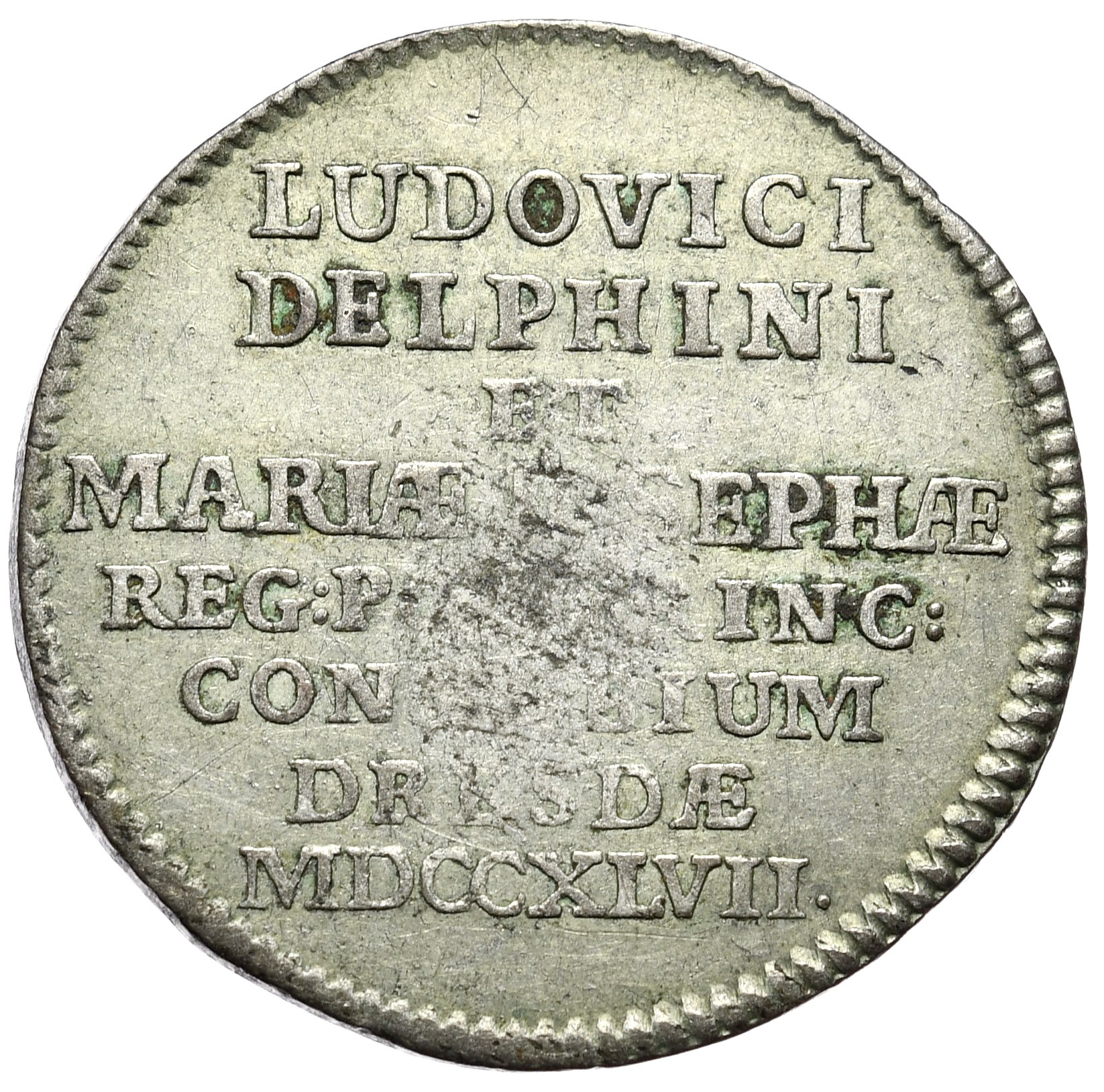 Dobrej kondycji i prezencji dwugrosz okolicznościowy z okazji zaślubin córki króla Augusta III, Marii Ludwiki z Ludwikiem Ferdynandem,