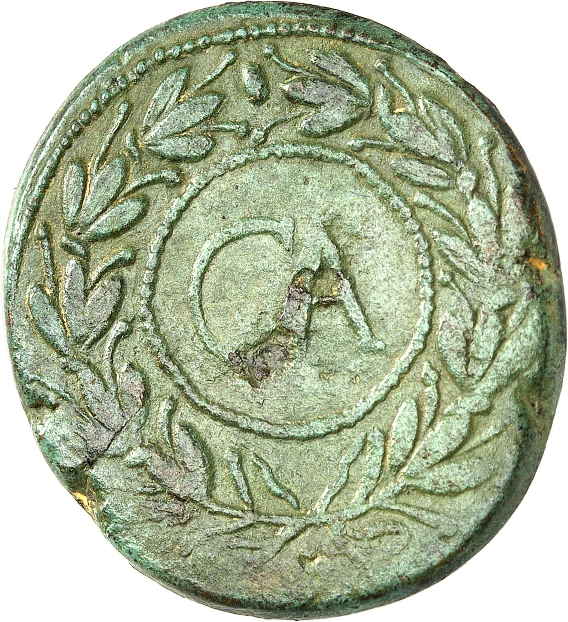 Rv. CA dans un grènetis, dans une couronne formée de deux branches.
