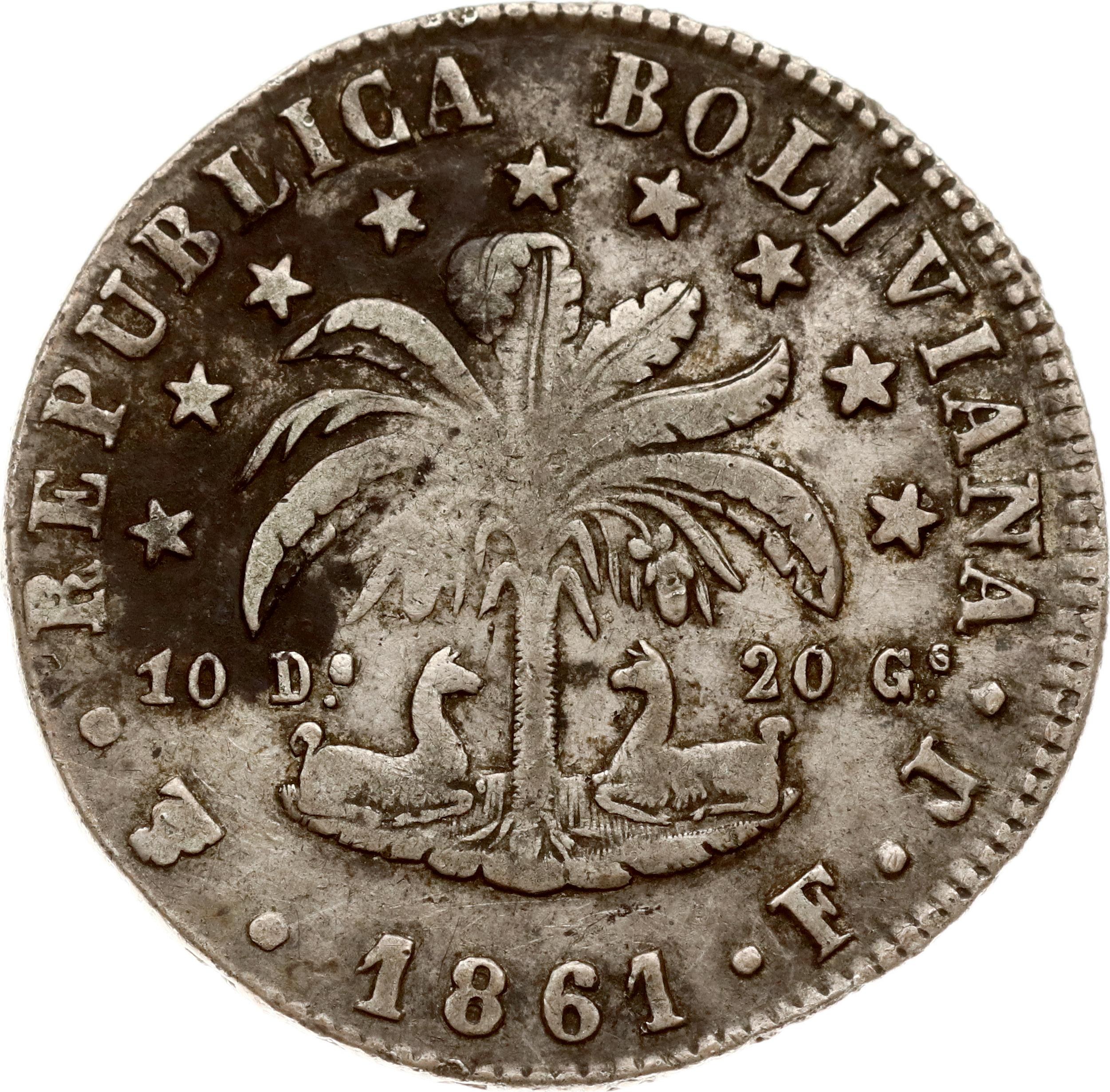 Bolivia. 8 Soles 1861 PTS FJ. Silver 19.95 g. KM 138.6.