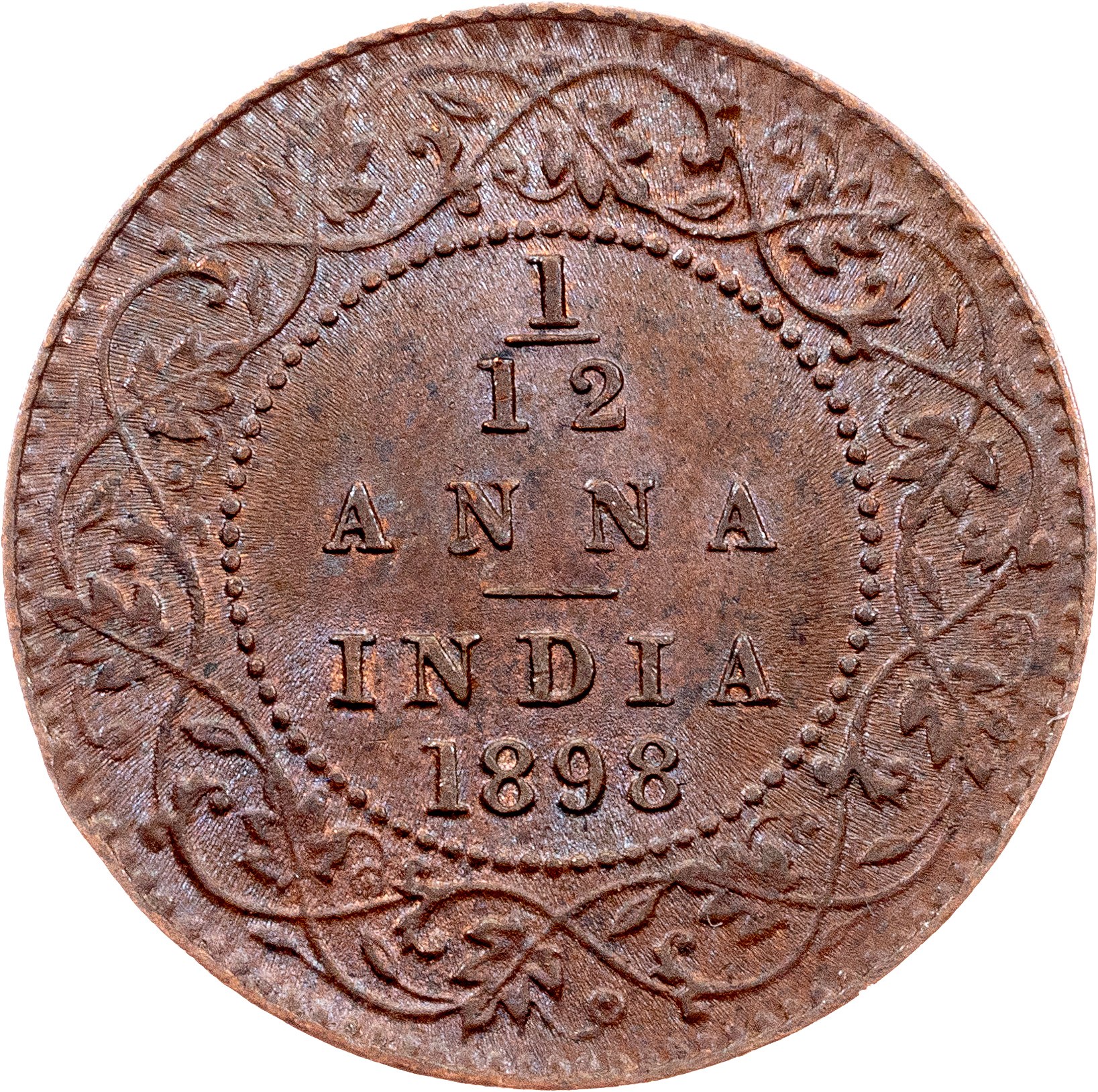 British India, Victoria, 1/12 Anna 1898, Calcutta, 2,178 g, Copper, KM# 483, mint luster, toned; UNC