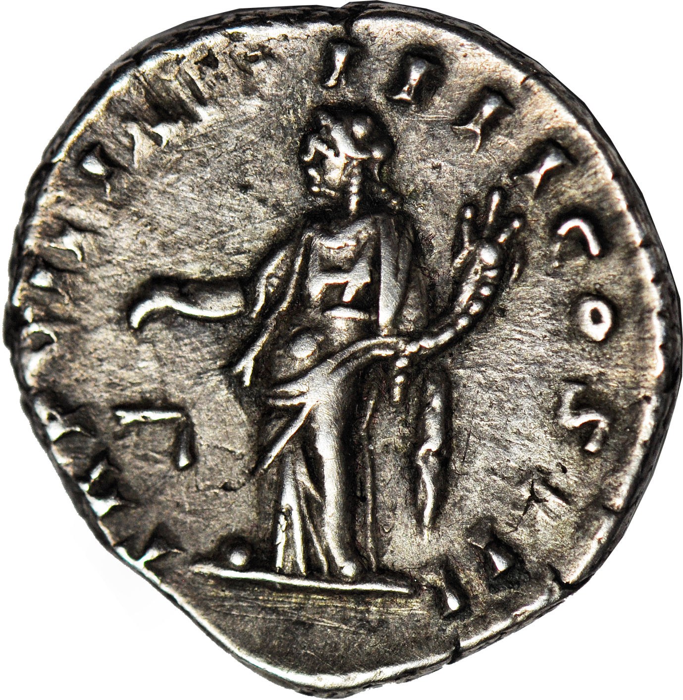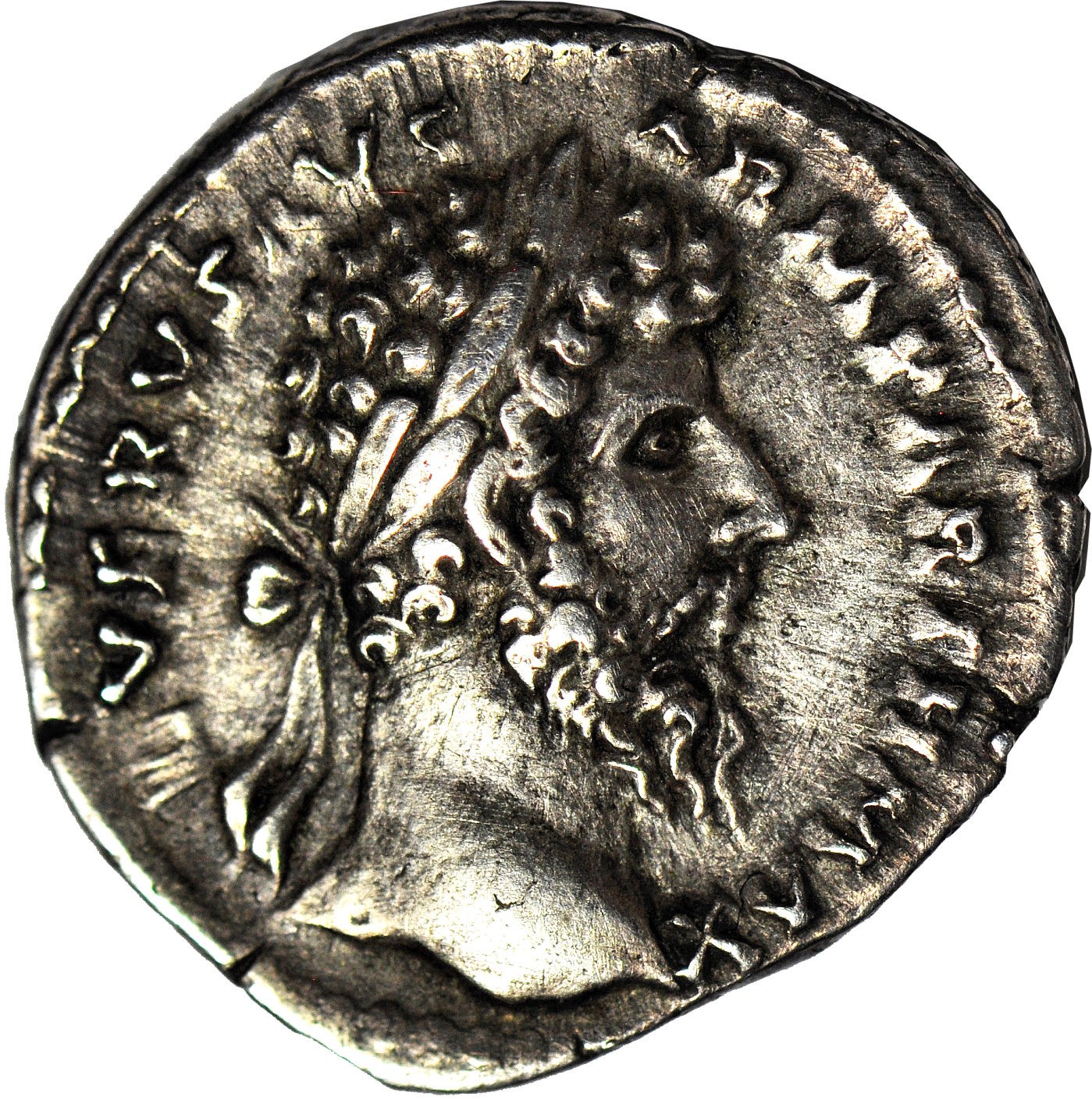 Aw: Głowa Werusa w wieńcu zwrócona w prawo, napis L VERVS AVG ARM PARTH MAX, Rw: Aequitas stojąca z wagą i rogiem obfitości, napis TR P VII IMP IIII COS III