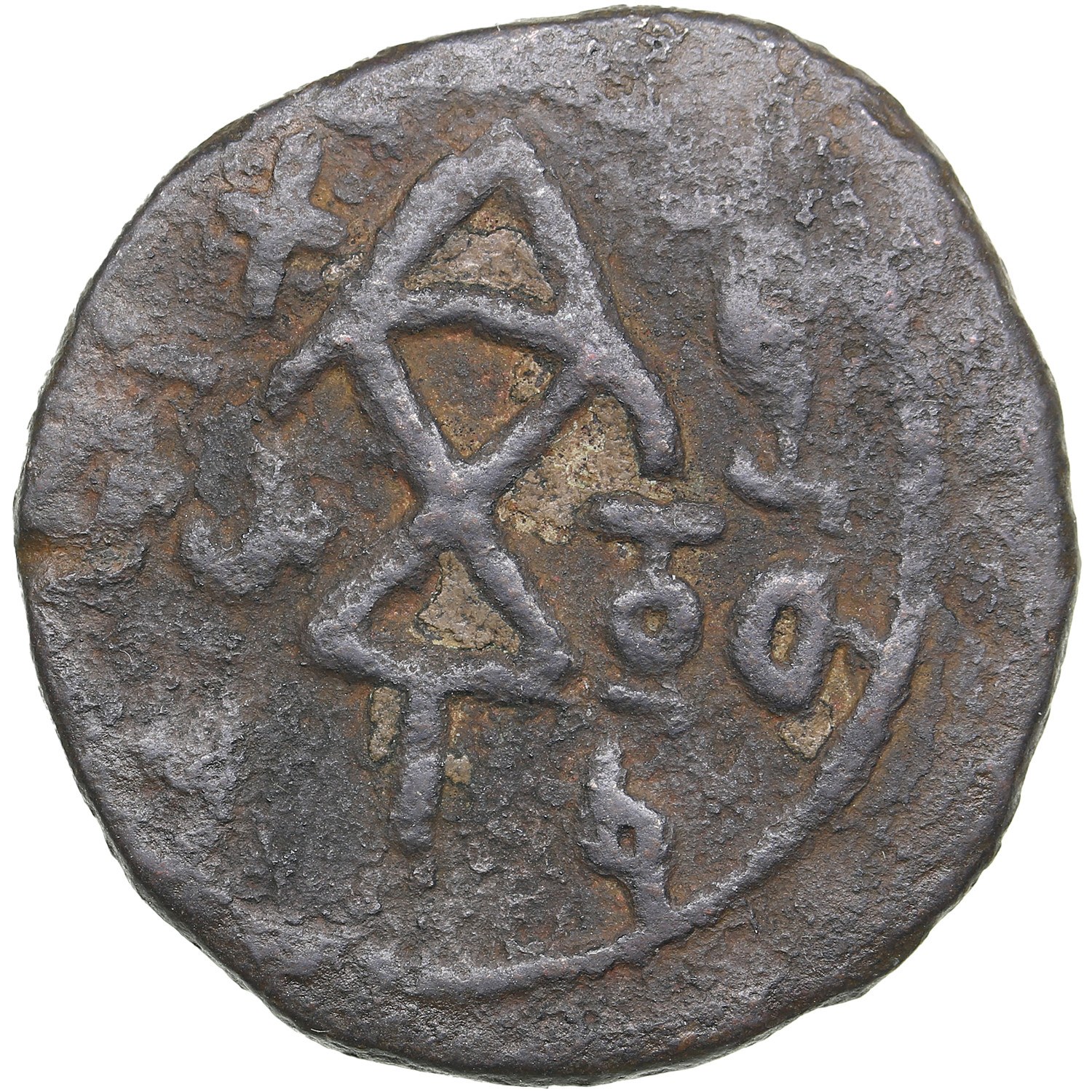 6.40g. 27mm. VF/F. With countermark on reverse. Obv.: Royal symbol flanked by the initials of the queen, T(ama)R, and his consort, D(avi)T, Georgian letters representing Paschal (Koronikon) date "420". Rev.: 4-line Arabic legend with the name & titles of Tamar. Kapanadze 64; Bennett 175.