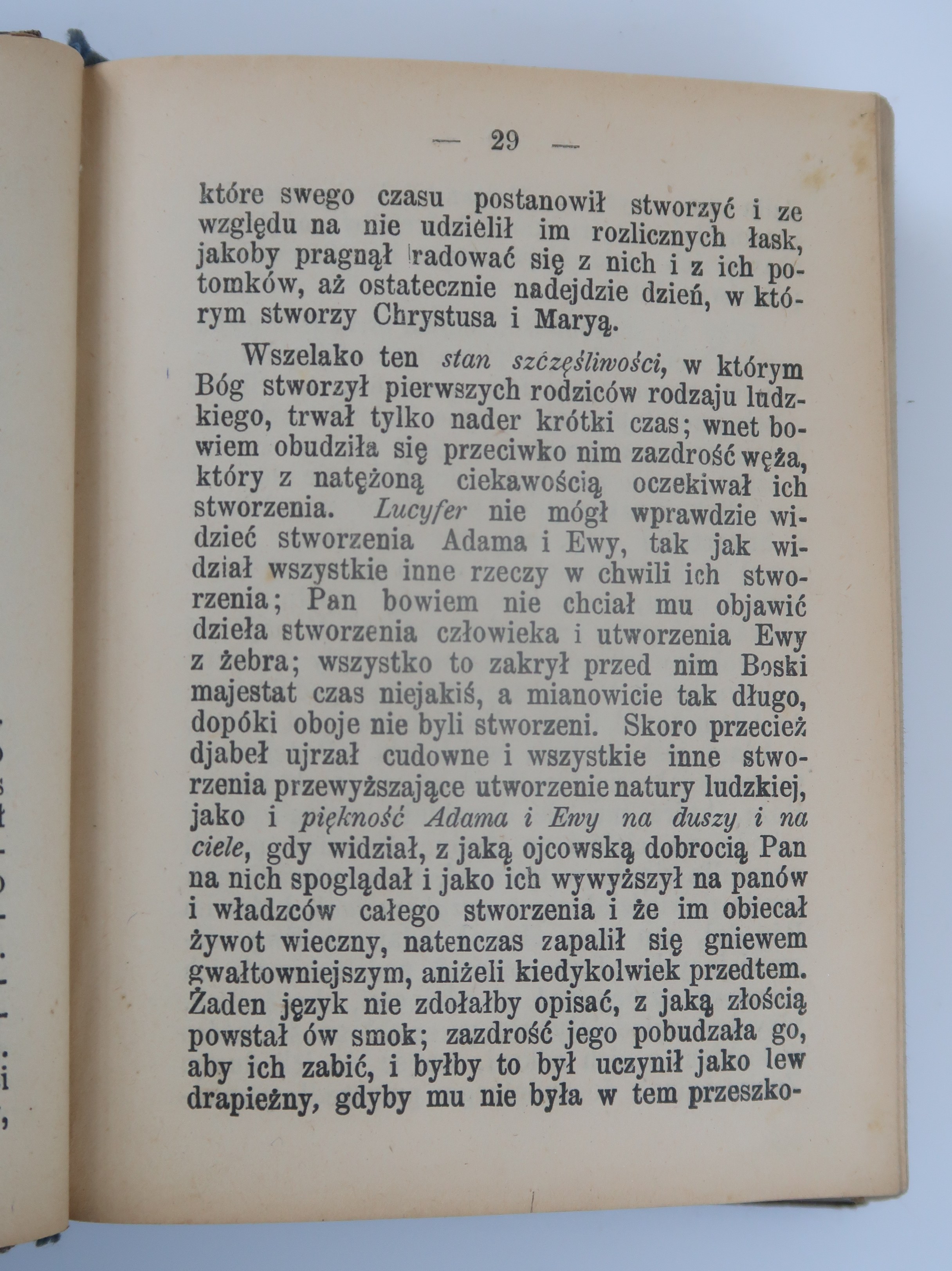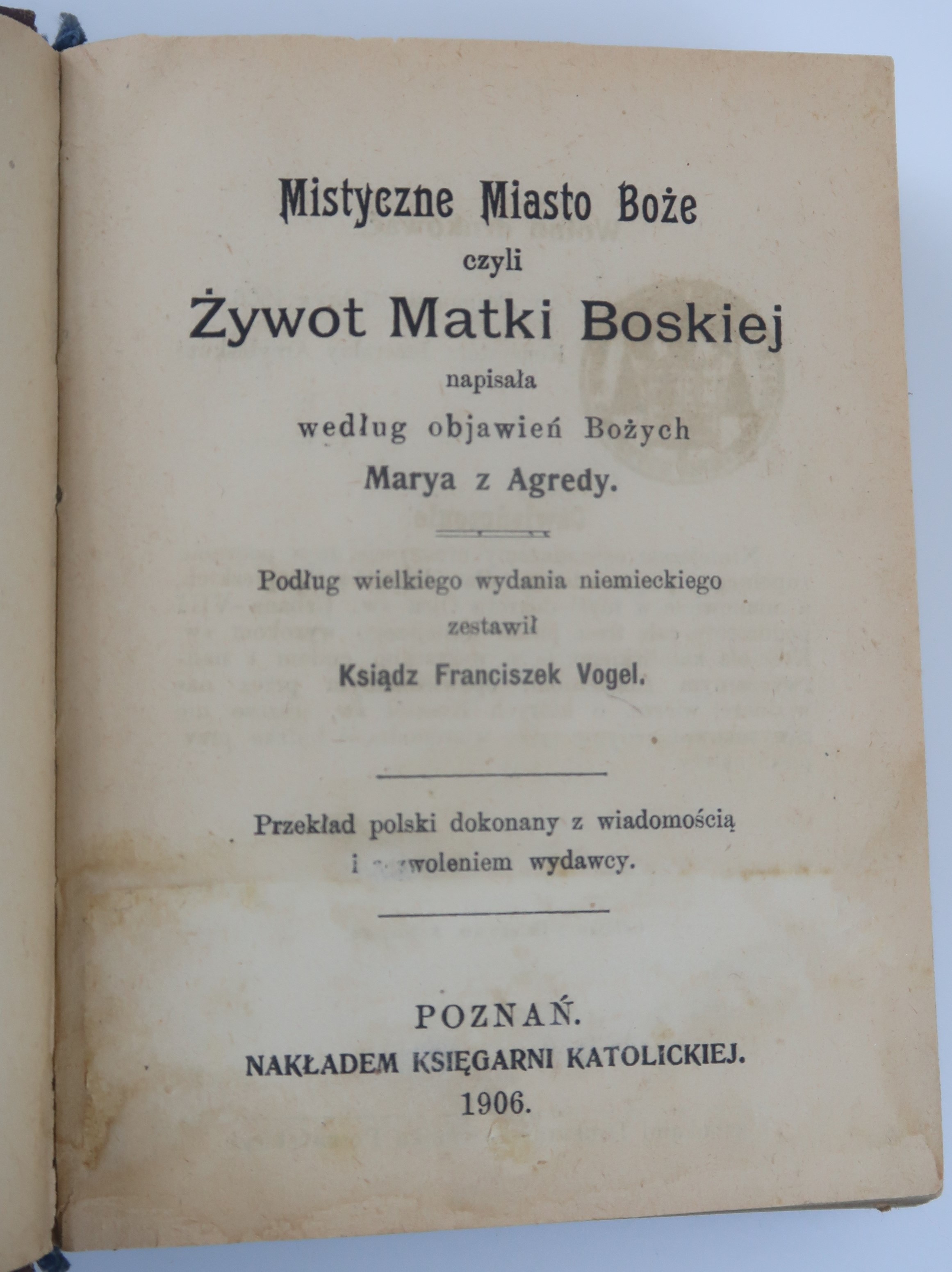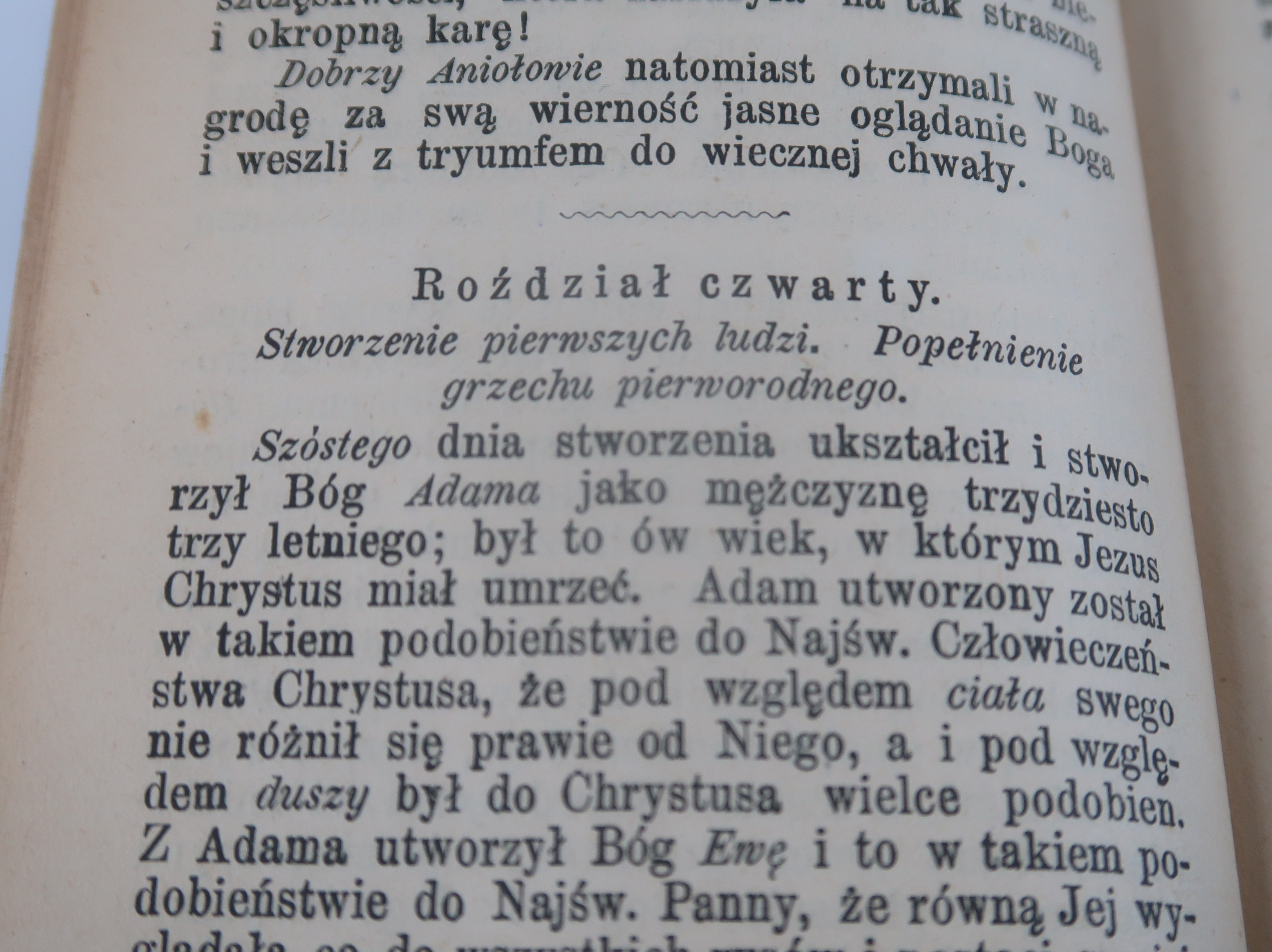 Podług wielkiego wydania niemieckiego zestawił ksiądz FRANCISZEK VOGEL, POZNAŃ 1906, nakładem KSIĘGARNI KATOLICKIEJ, s. 751, wym. 10 x 14, oprawa introligatorska z epoki, półpłótno, obtarcia okładki na krawędziach, jedna z kart podklejona taśmą.