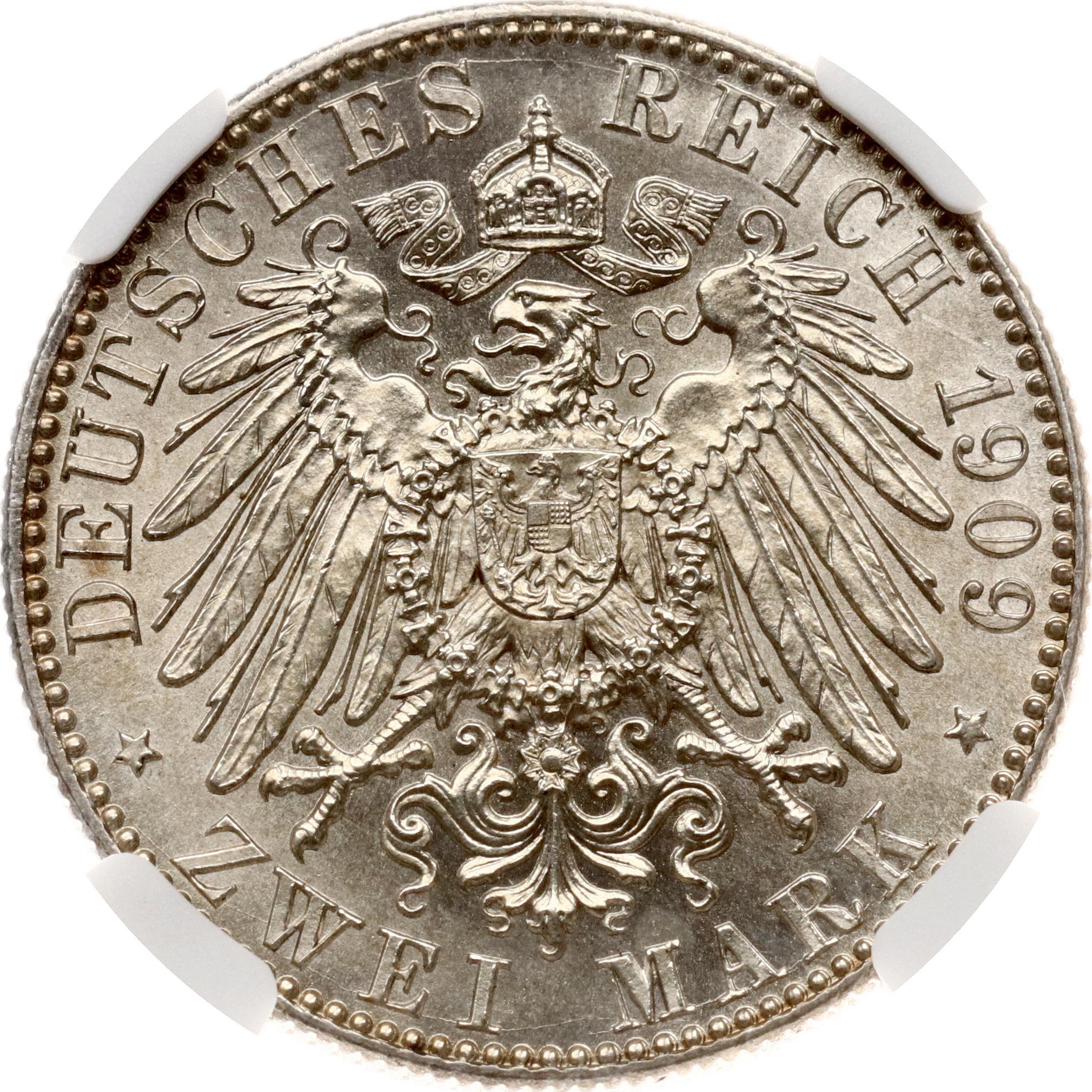 Germany Saxony 2 Mark 1909 E Leipzig University NGC MS 62