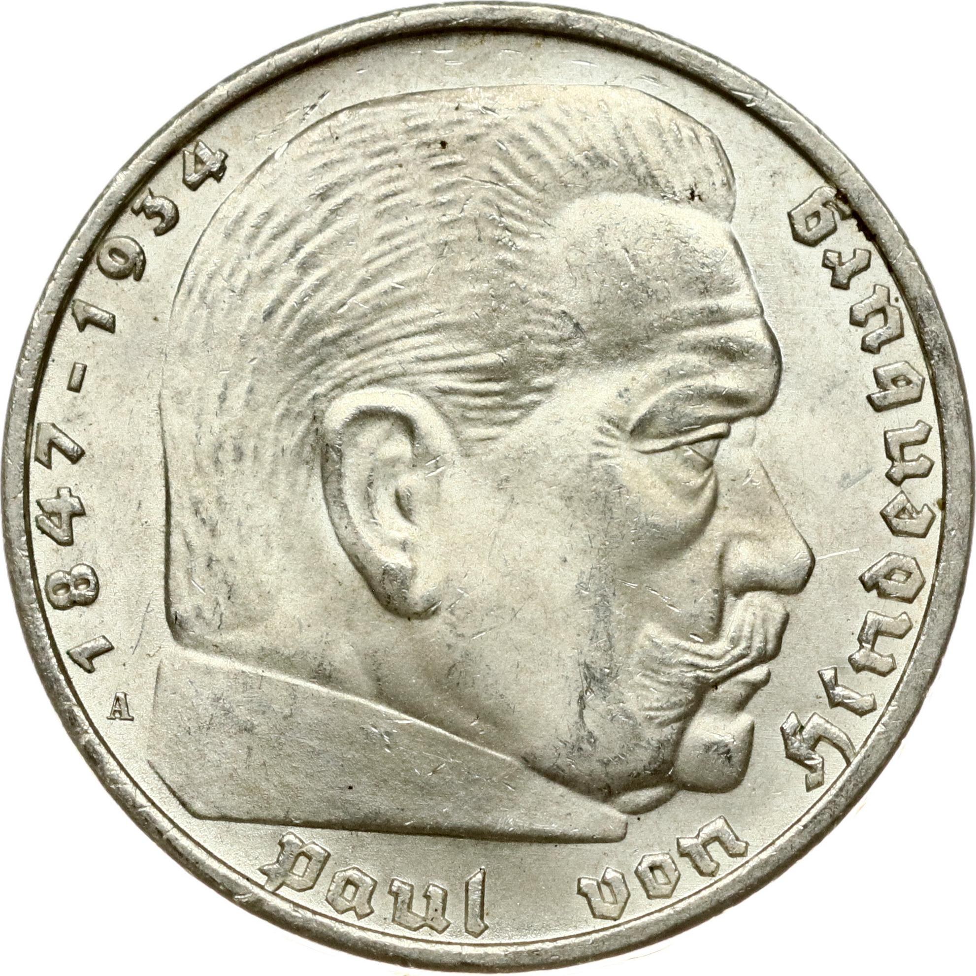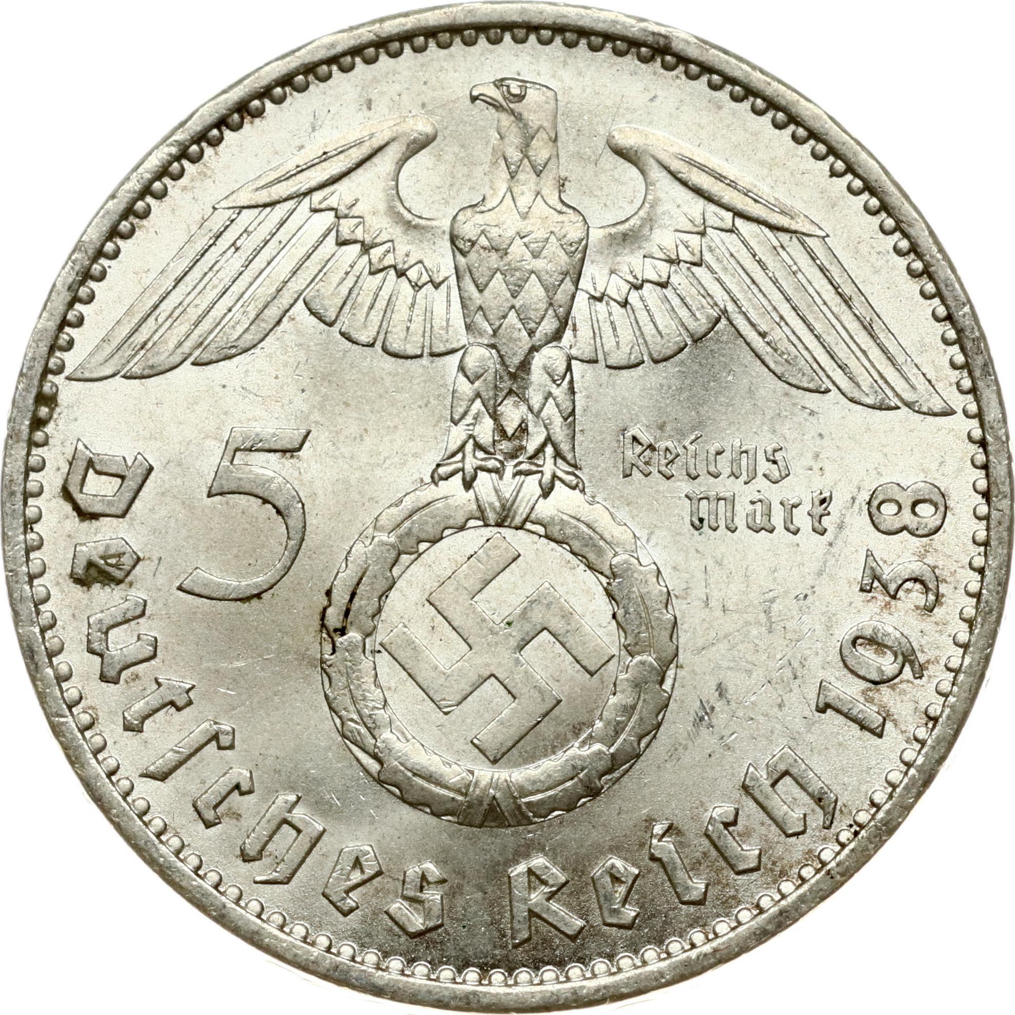 Germany Third Reich 5 Reichsmark 1938 A Paul von Hindenburg
