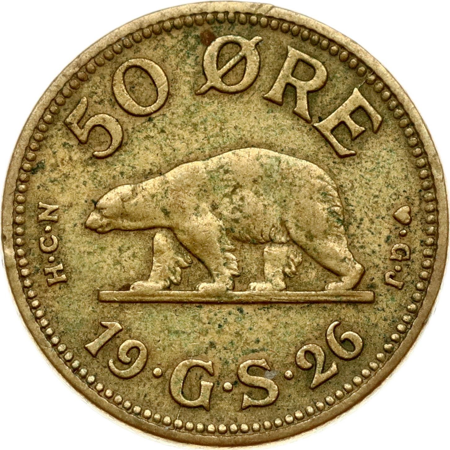 Greenland. Christian X (1912-1947). 50 Ore 1926 HCN;GJ. Aluminium bronze 3.82 g. KM 7.