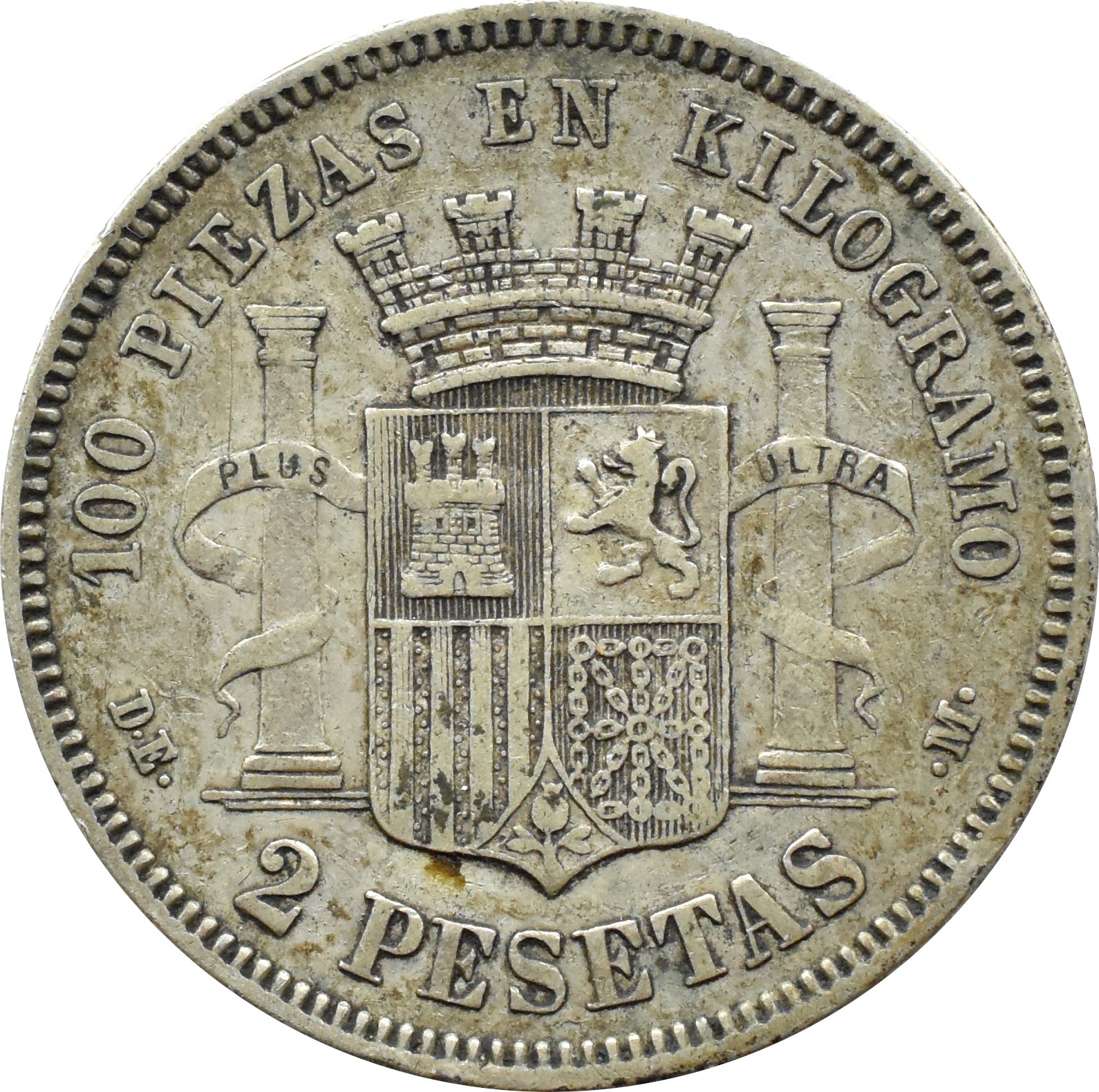 Hiszpania, Rząd Tymczasowy (1869-1874), 2 pesety 1870 D.E.-M., mennica Madryt