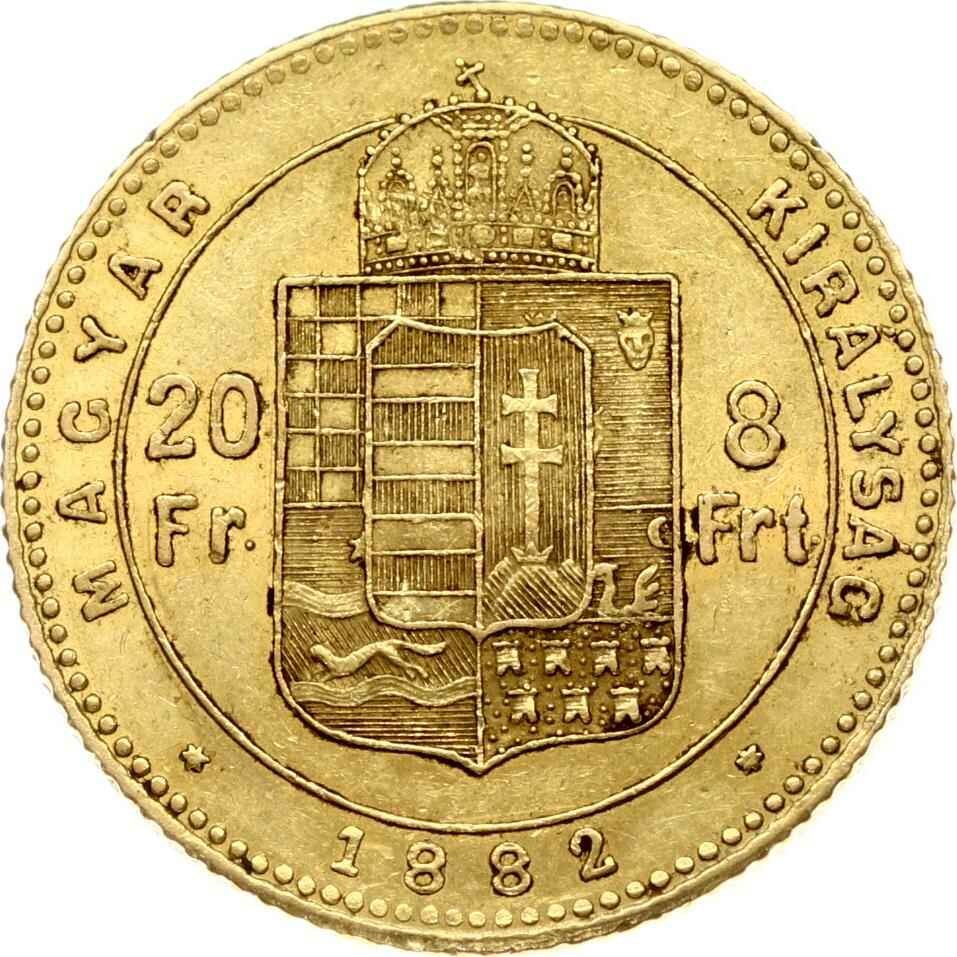 Hungary 8 Forint - 20 Francs 1882 KB