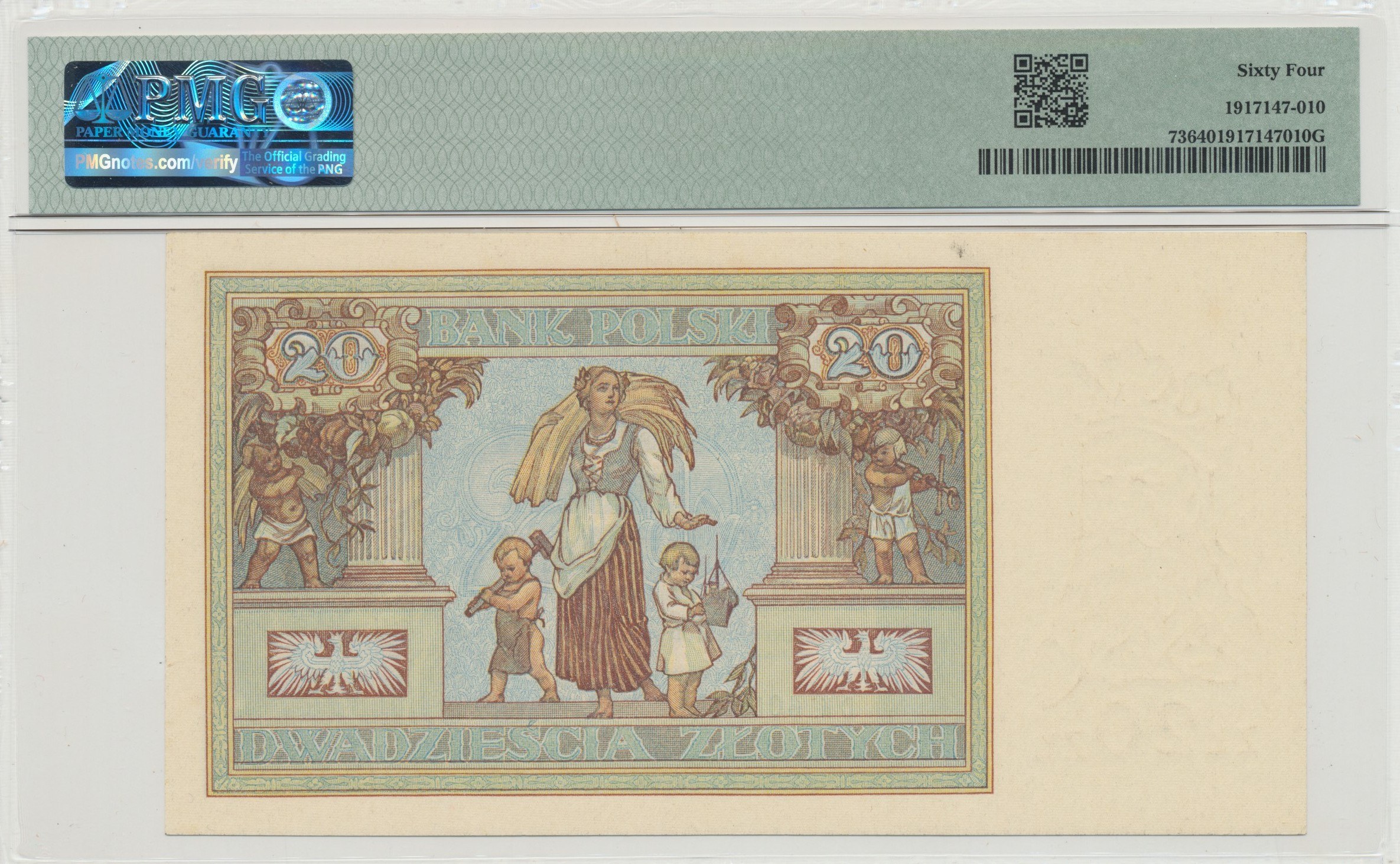 Egzemplarz w pięknym stanie zachowania, o doskonałej prezencji poddany ocenie w PMG z notą 64.