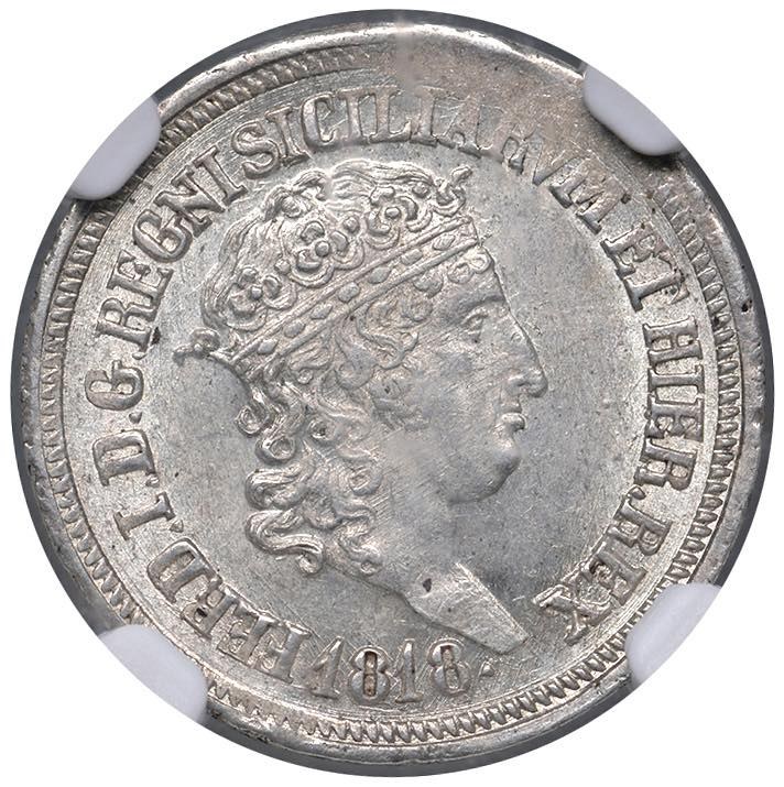 NAPOLI Ferdinando I (1816-1825) Carlino 1818 - Magliocca 449 AG In slab NGC MS 63 cod. 2809905-055
