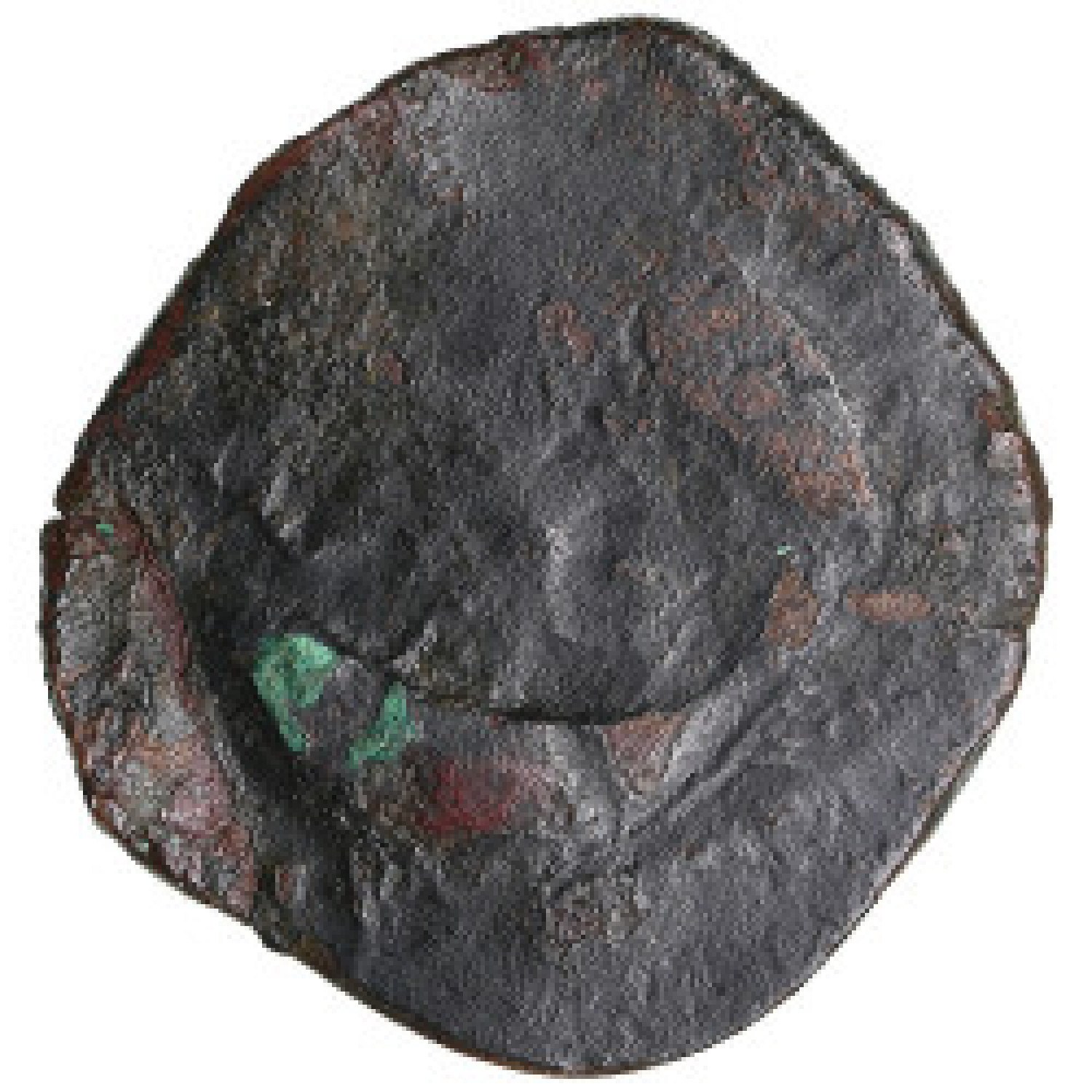 Khan (1380-95). AE Pul, 1.96g. ND, NM (Lower Volga). Pictorial type with two fishes. VF/VF.
