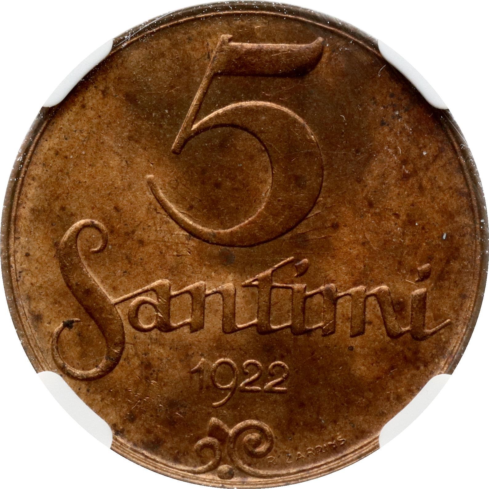 Latvia 5 Santimi 1922 NGC MS 62 RB