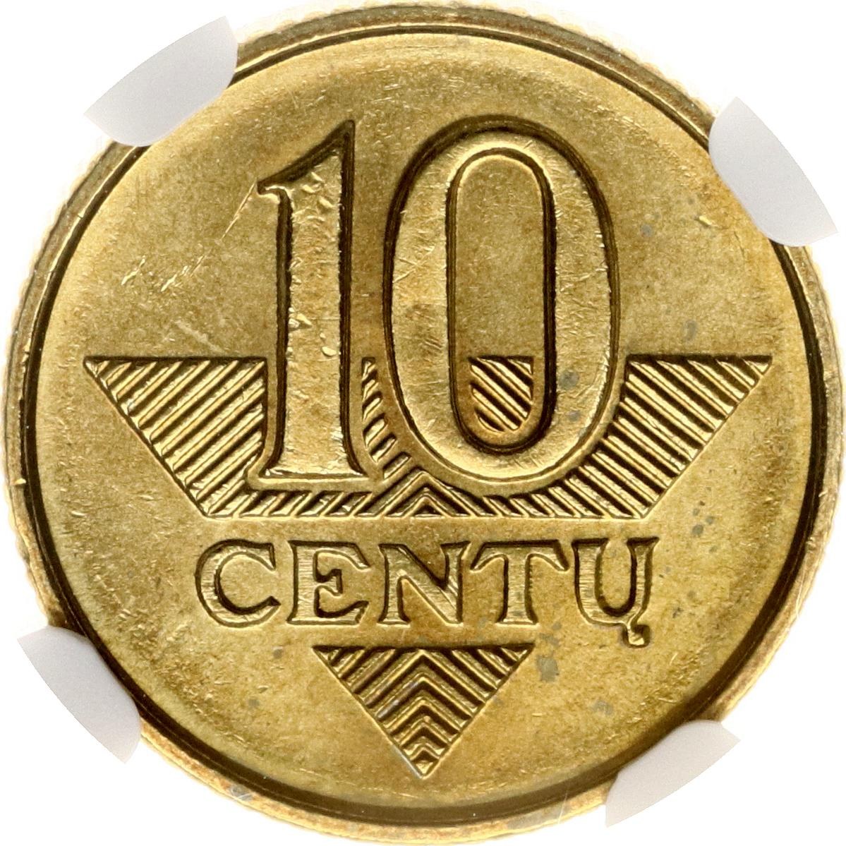 Lithuania. 10 Centu 1997. Nickel brass. KM 106. NGC MS 65. Only 4 coins in higher grade.