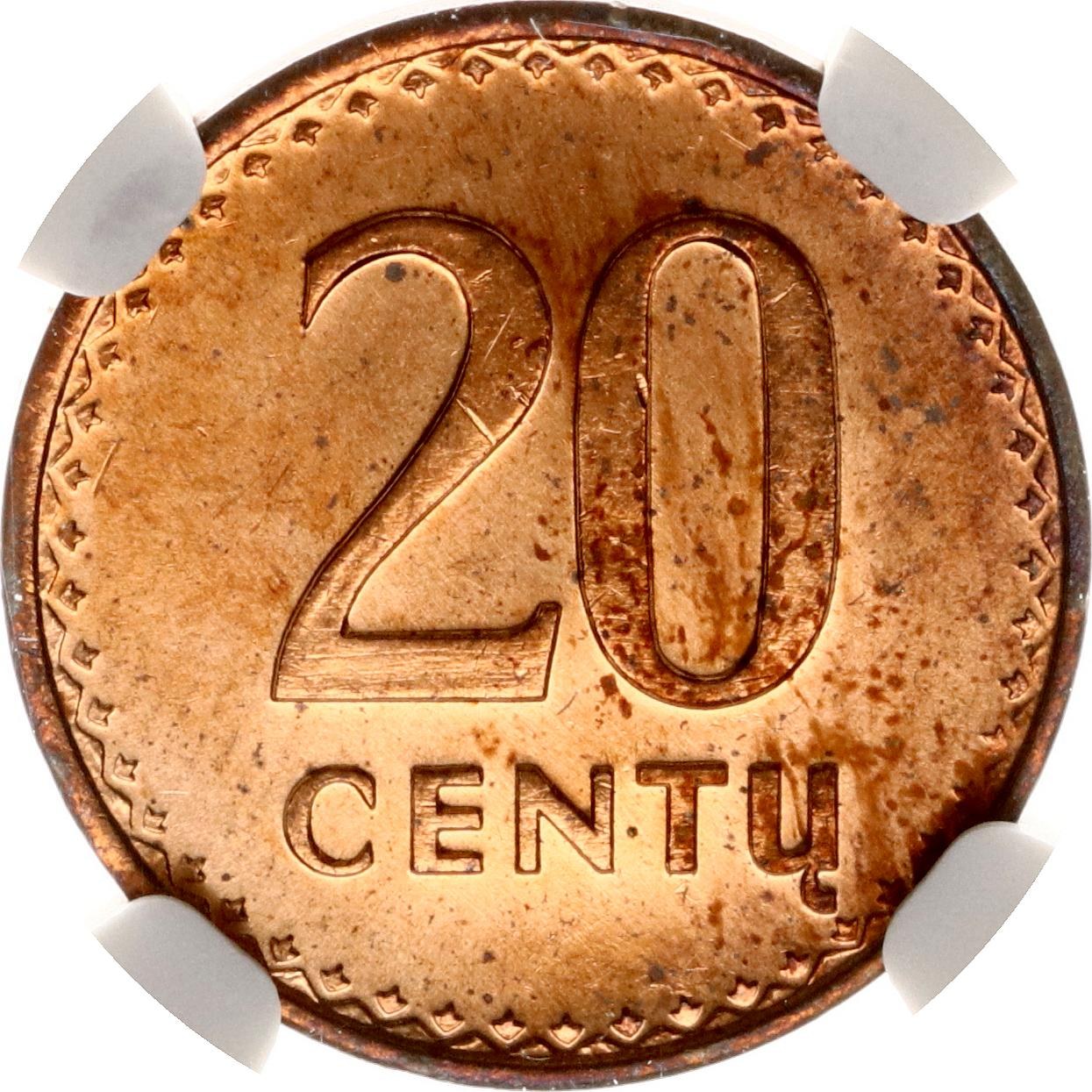 Lithuania 20 Centu 1991 NGC MS 64 RB