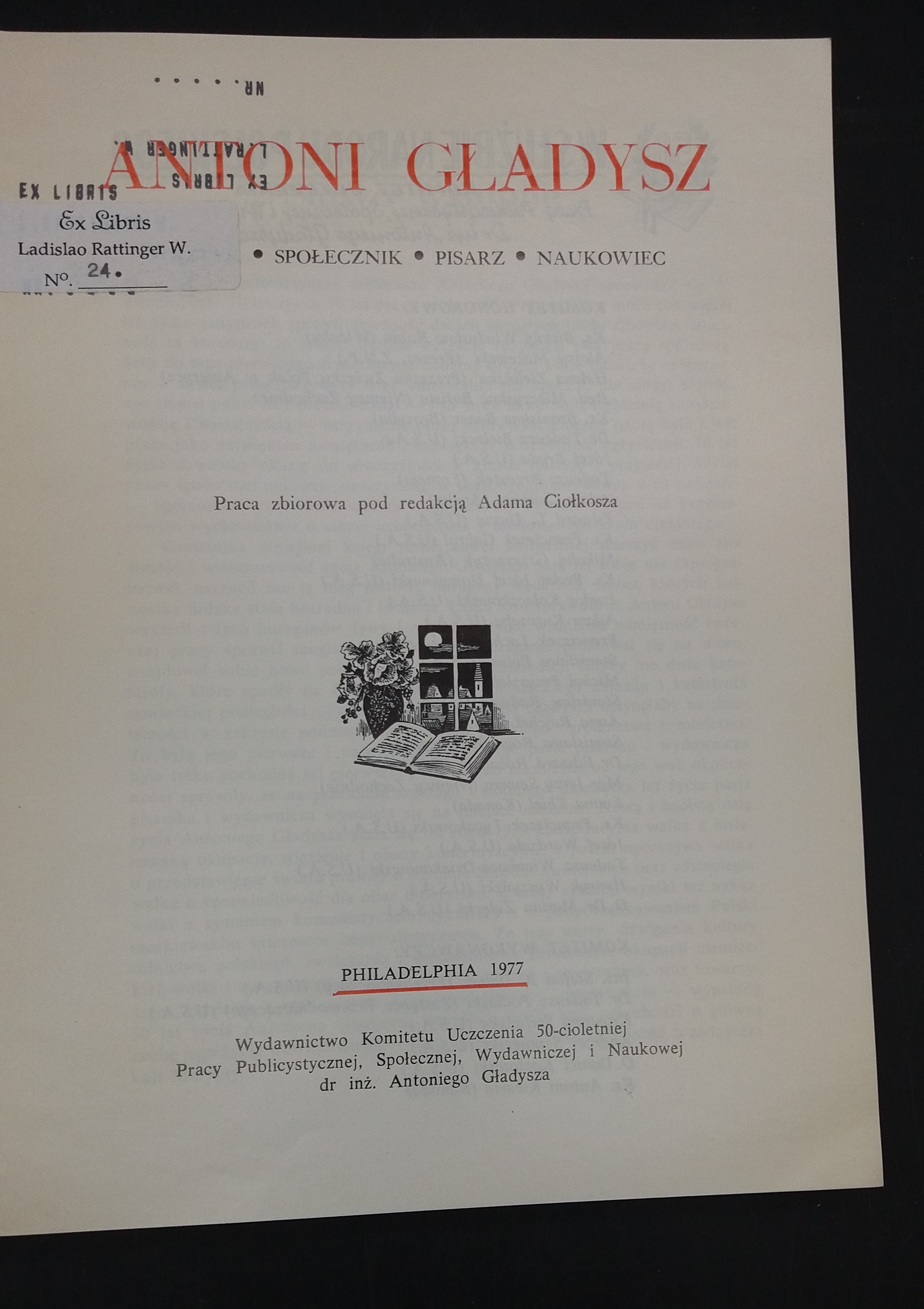 Wydawnictwo Komitetu Uczczenia 50-cioletniej Pracy Publicystycznej, Społecznej, Wydawniczej i Naukowej dr inż. Antoniego Gładysza
