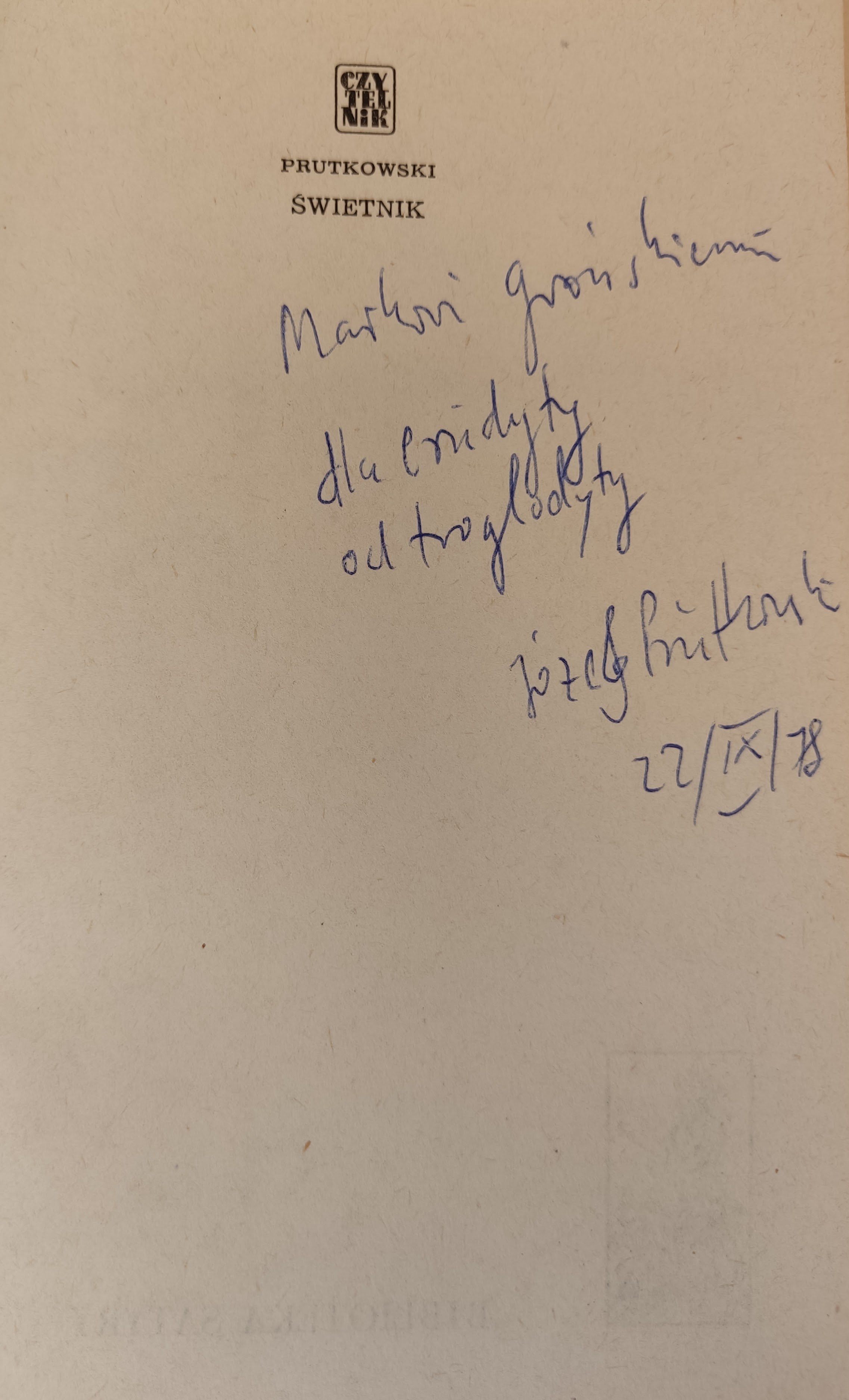 Wyd. Czytelnik. Warszawa 1978. Wydanie 1. Wym. 19,4x12,5cm; stron 152. Oprawa broszurowa w obwolucie(ubytek grzbietu obwol., przybrudzenia, odbarwienia, otarcia krawędzi i nieznaczne postrzępienia, nieznaczne zgięcia obwol.). Obwolutę i okładkę projektował A. Heidrich. Odręczna dedykacja dla Marka Grońskiego od Autora.