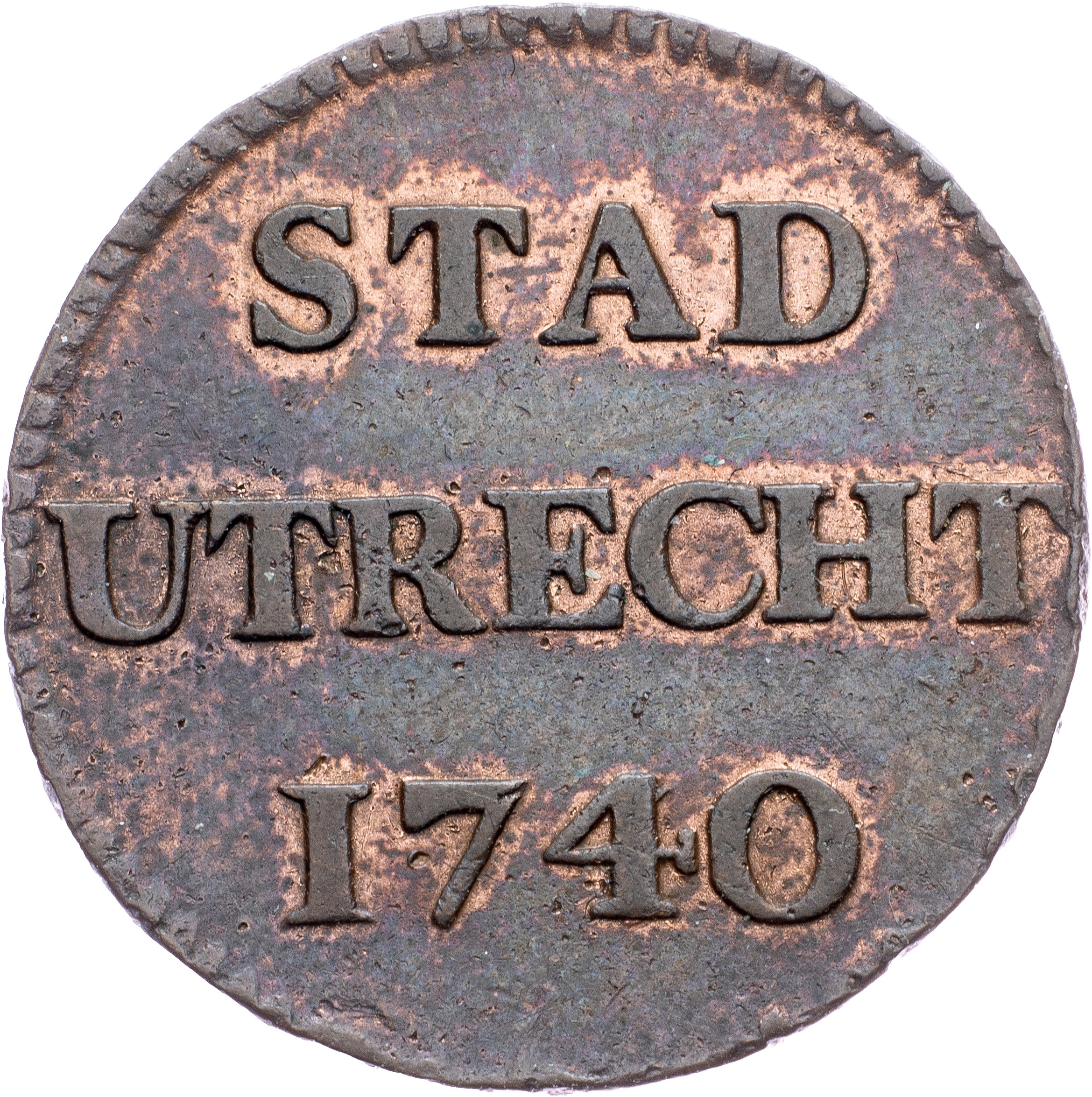 Netherlands, City of Utrecht, 1 Duit 1740, Utrecht, 3,218 g, Copper, KM# 91, toned; VF+