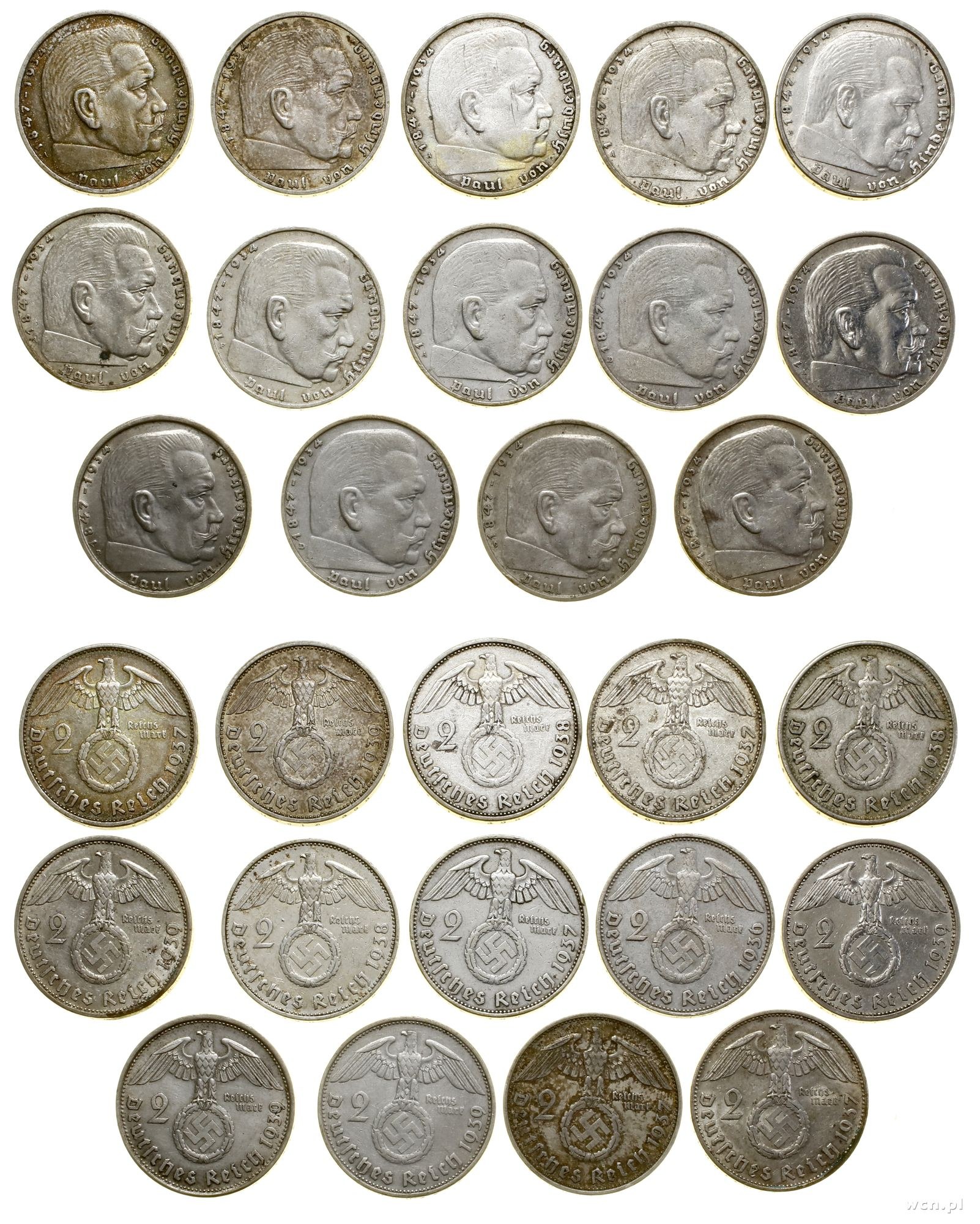 Paul von Hindenburg, w zestawie: 1 x 1936 D, 3 x 1937 A, 1 x 1937 E, 1 x 1937 G, 1938 A, 1938 B, 1938 F, 3 x 1939 A, 1 x 1939 B, 1 x 1939 D