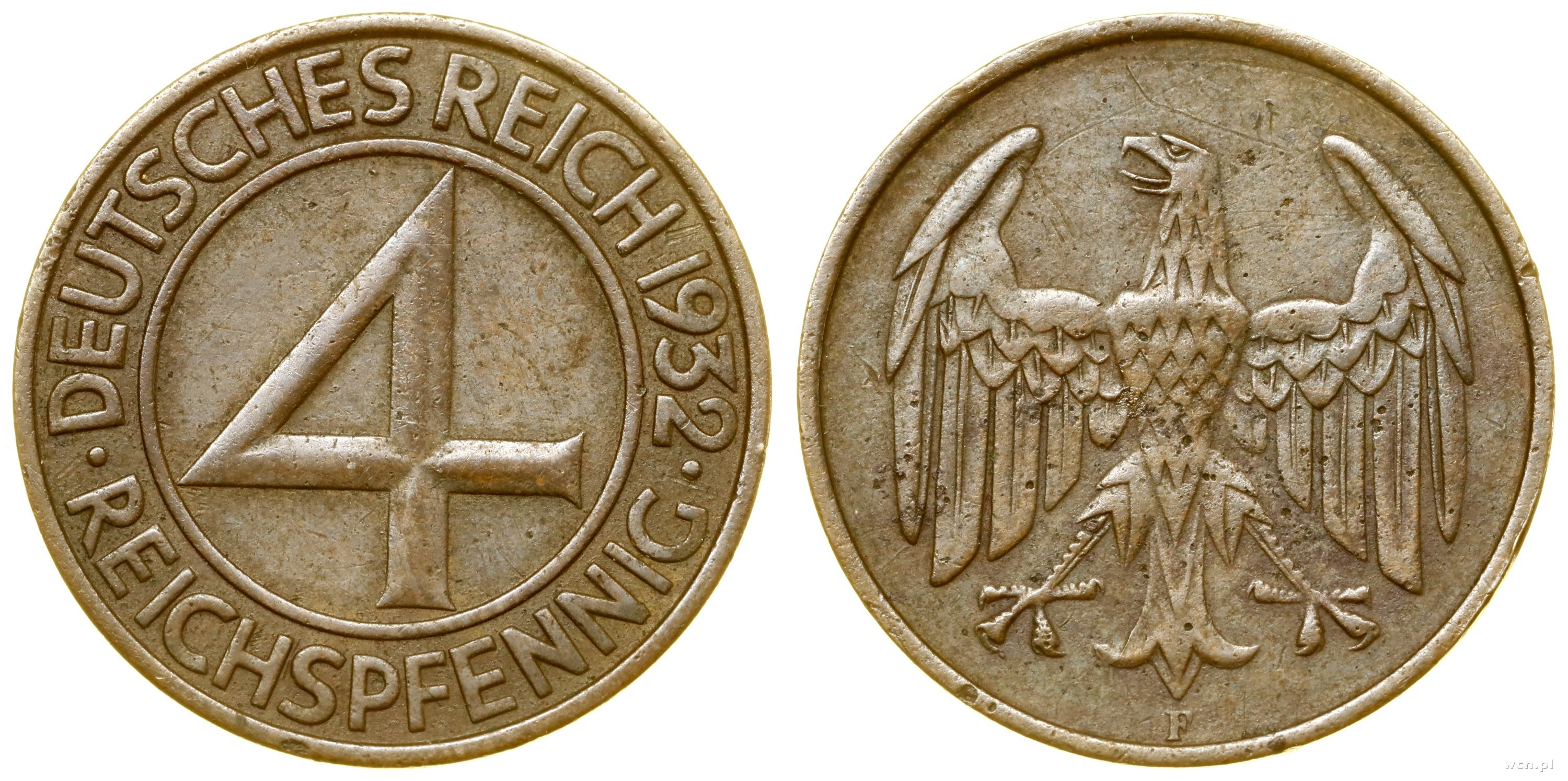 Niemcy, 4 fenigi, 1932 F, Stuttgart