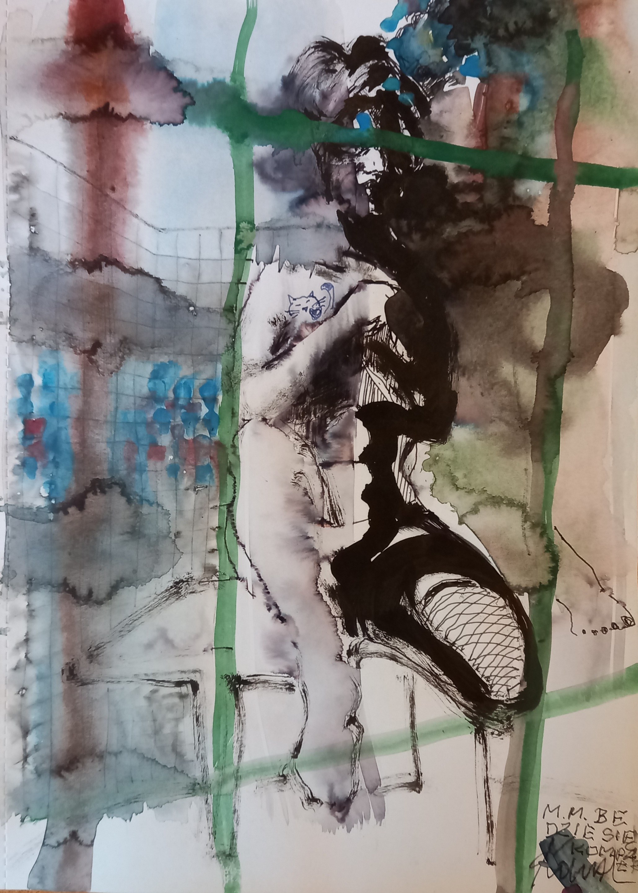 Akwarela , tusz lawowany , długopis / papier , sygn. i opisany p. / d. , format 29,5 X 21 cm.