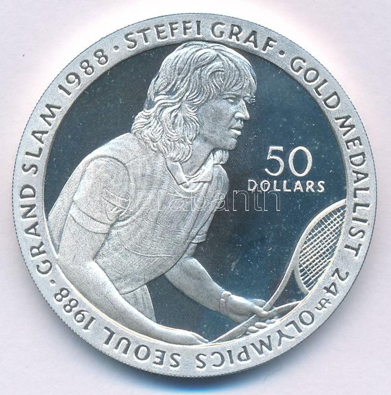 Niue 1989. 50$ Ag " Nyári Olimpia Szöul 1988 - Steffi Graf" T:PP ujjlenyomat Niue 1989. 50 Dollars Ag "Summer Olympics Seoul 1988 - Steffi Graf" C:PP fingerprints Krause KM#44
