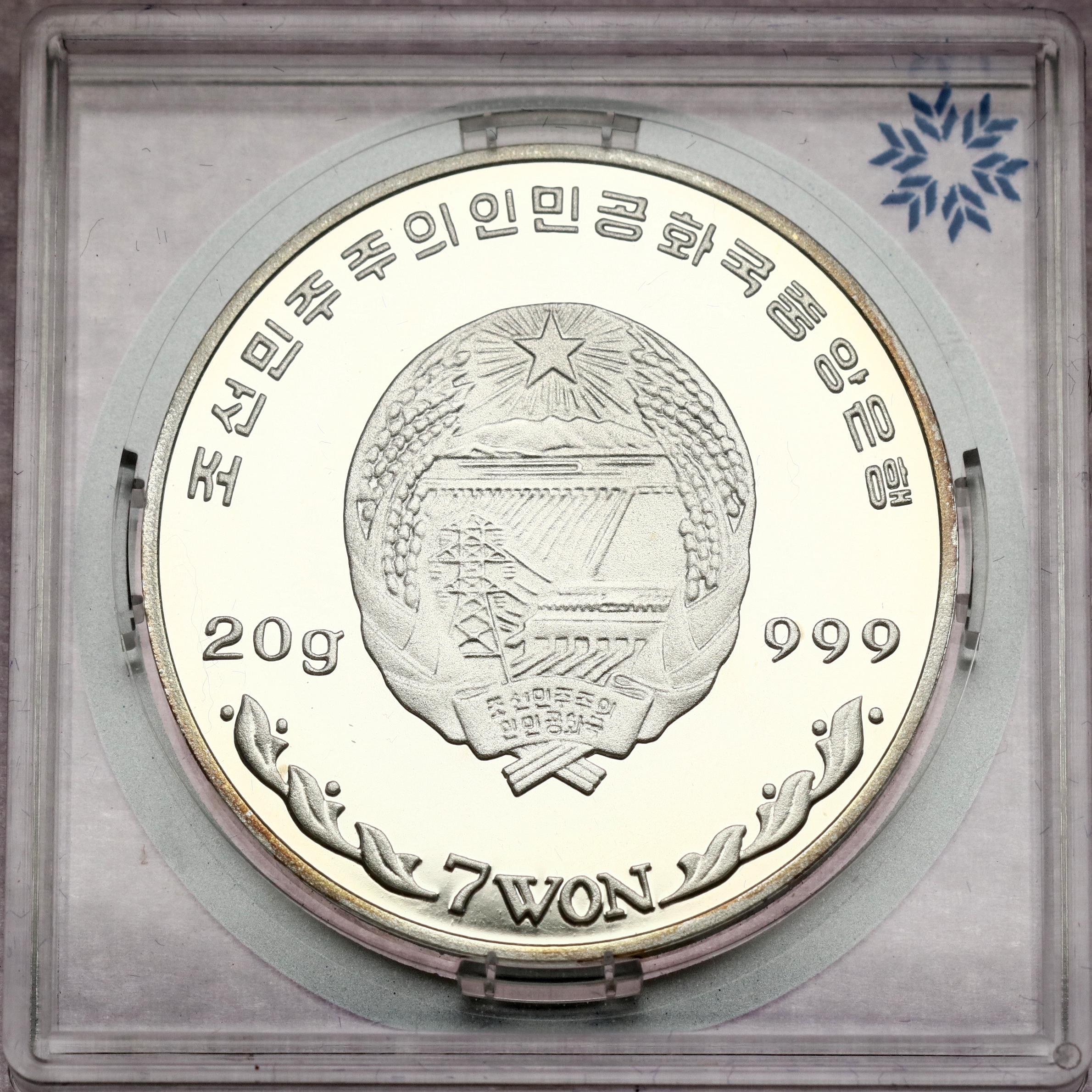 North Korea. 7 Won 2001, Olympic Games 2002. Silver .999, 20.06 g. KM 220. In hard plastic.
