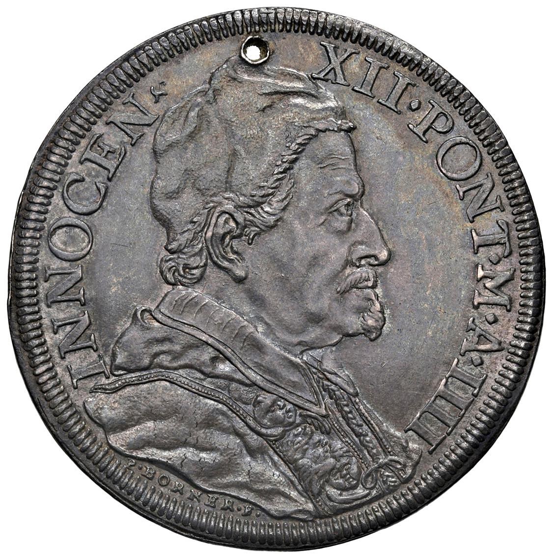 Papal coins - Innocenzo XII (1691-1700) Piastra 1694 A. IIII - Munt. 15 AG (g 31,95) R Forata. Splendida patina da anticha collezione