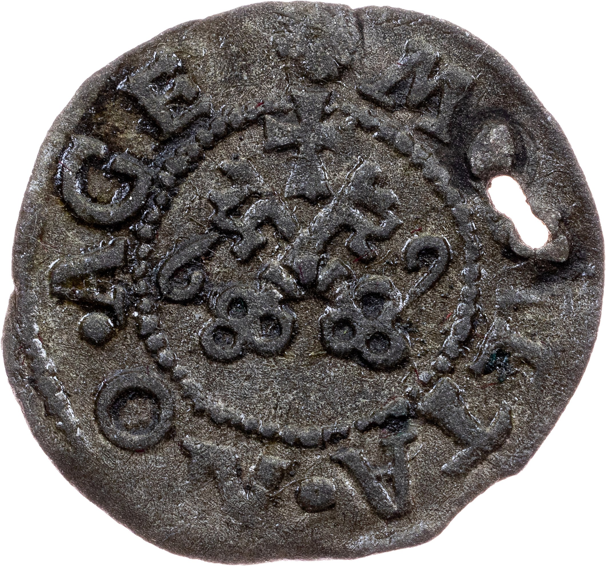 Free city of Riga, Free city, 1 Schilling 1569, Riga, 0,944 g, Billon, lacquered, hole; VF+