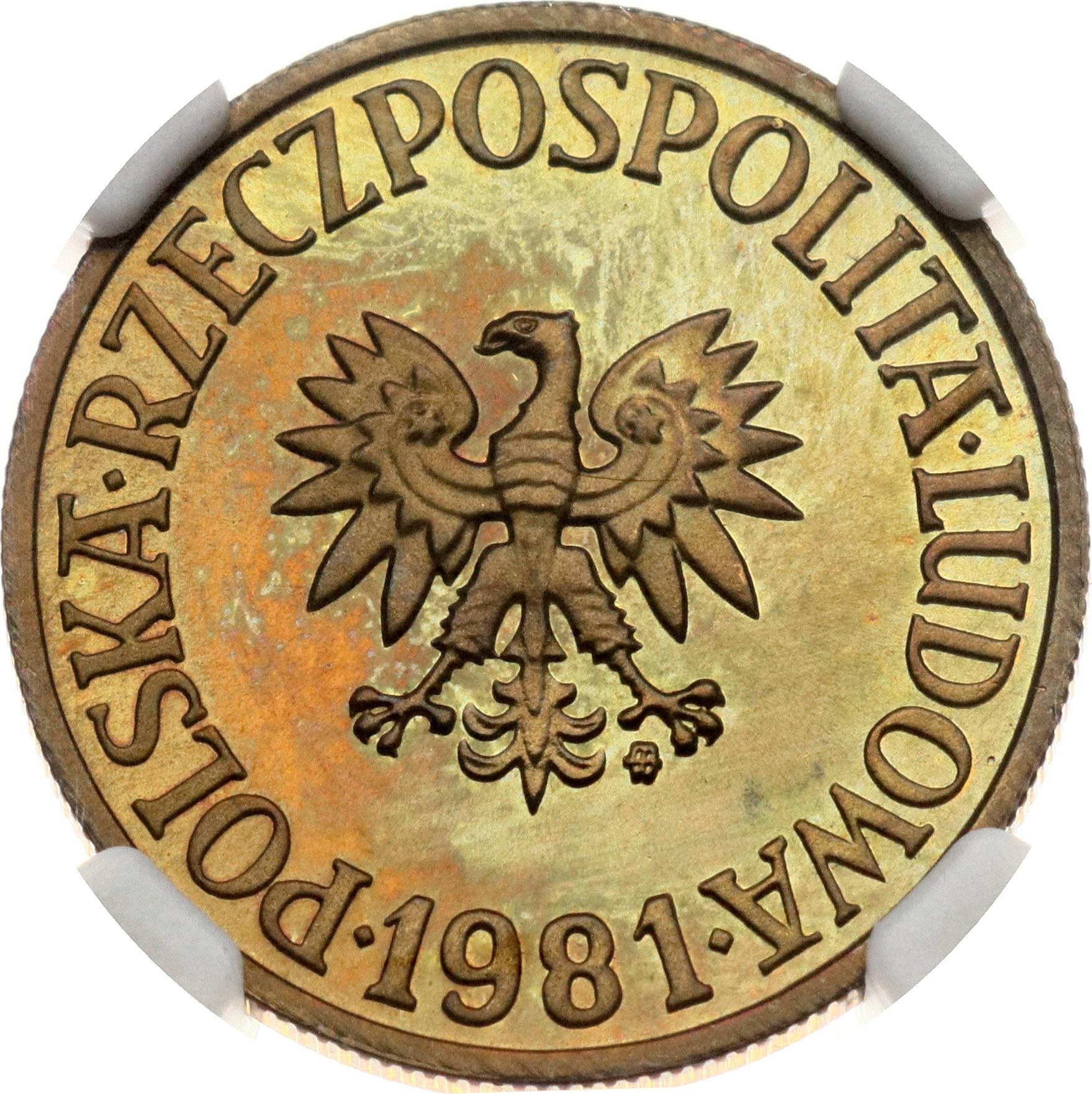 Poland. 5 Zlotych 1981 MW. Brass. Y 81.1. NGC PF 65.