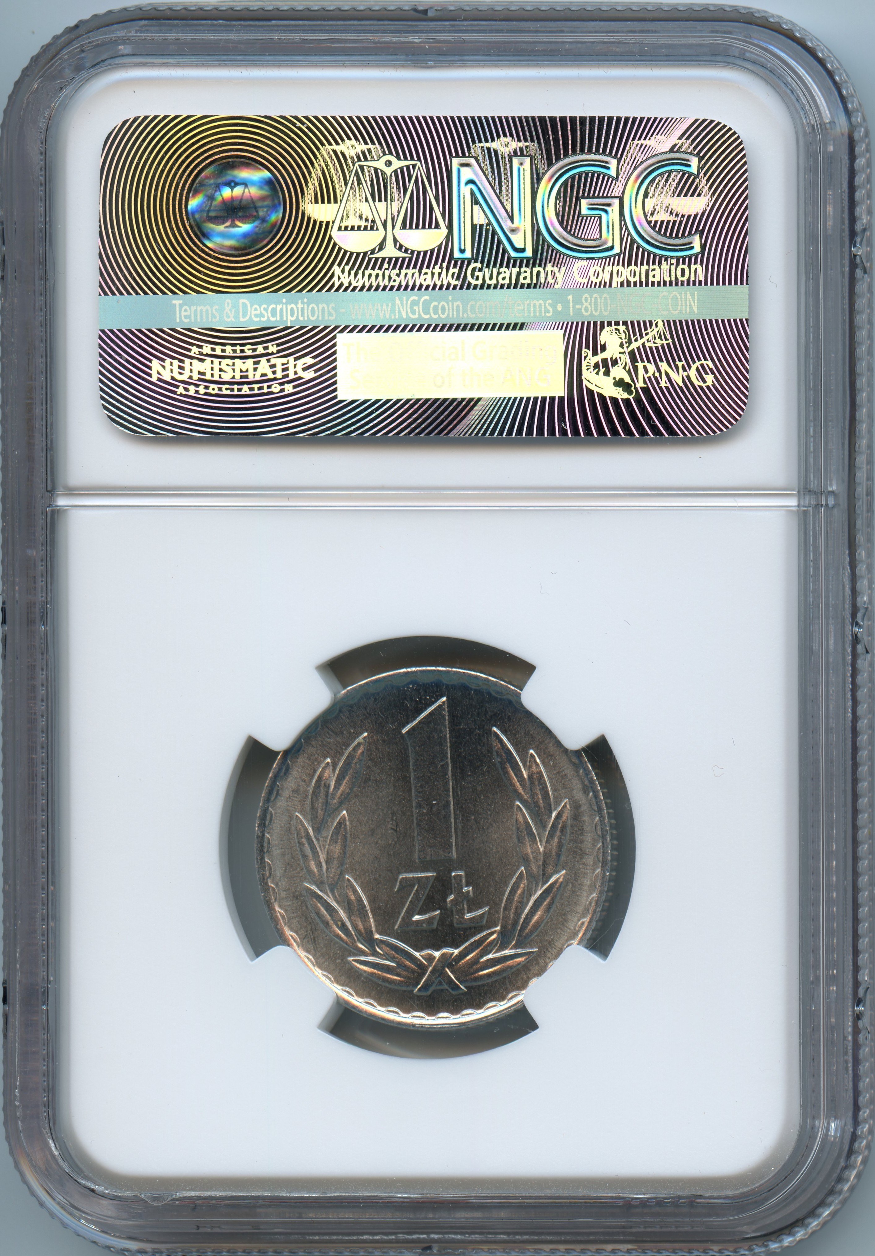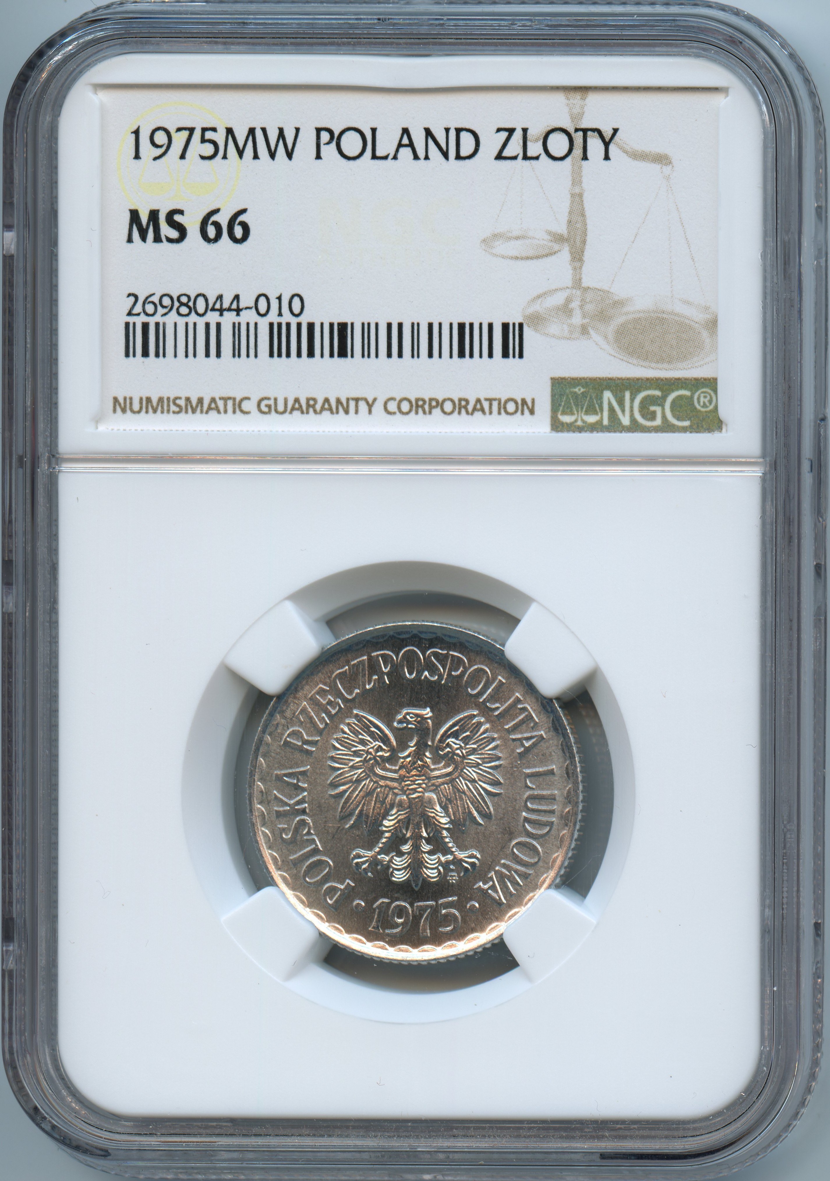 PRL, 1 złoty 1975, znak mennicy - NGC MS66
