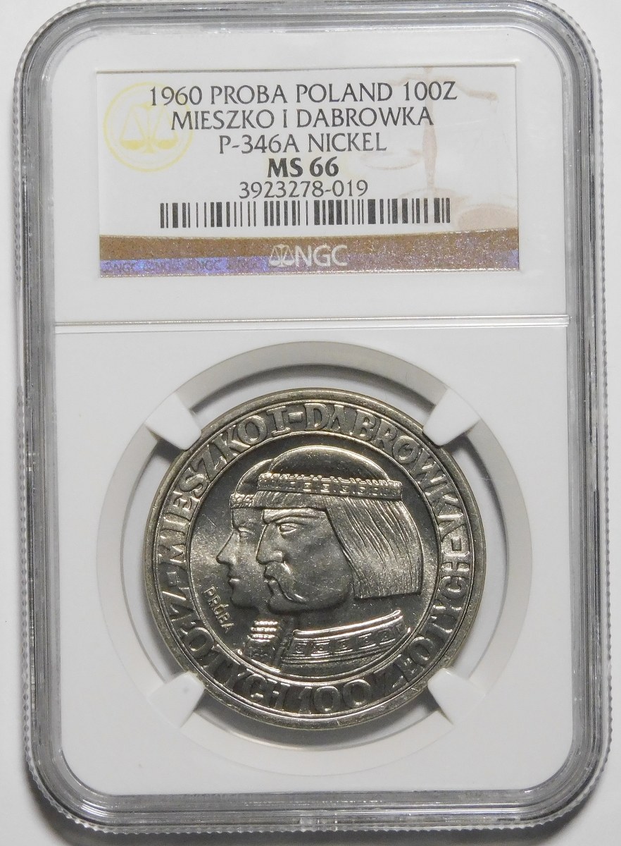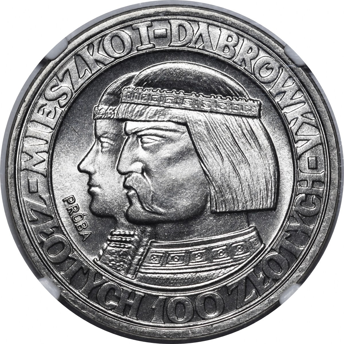 PRÓBA NIKIEL 100 złotych 1960 Mieszko i Dąbrówka - głowy w lewo, napis otokowy