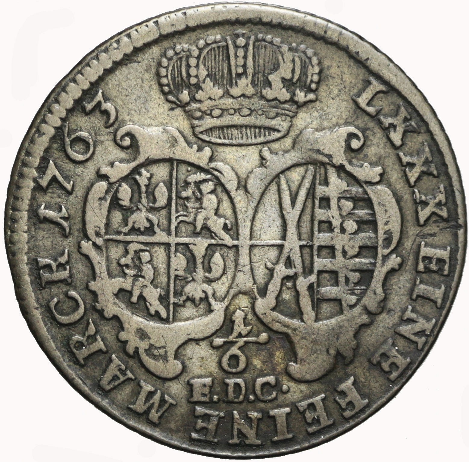 August III Sas, 1/6 talara 1763 EDC, Lipsk, rzadkie, R3