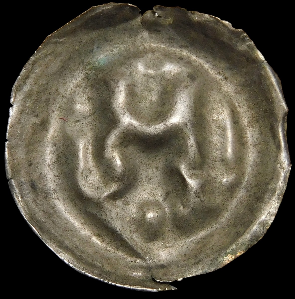 Przedstawienie: ukoronowana postać na wprost z mieczem i berłem w dłoniach.