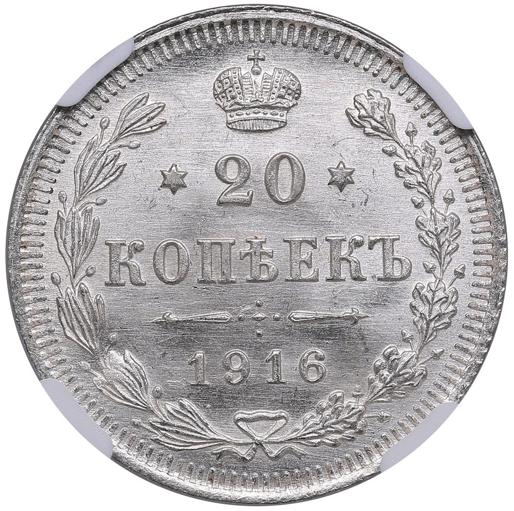 Russia 20 Kopecks 1916 BC - Nicholas II (1894-1917) - NGC MS 66