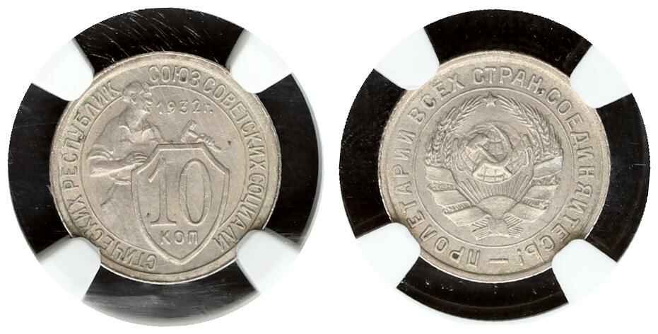 Russia, USSR. 10 Kopecks 1932. Copper-nickel. Y 95. NGC MS 62