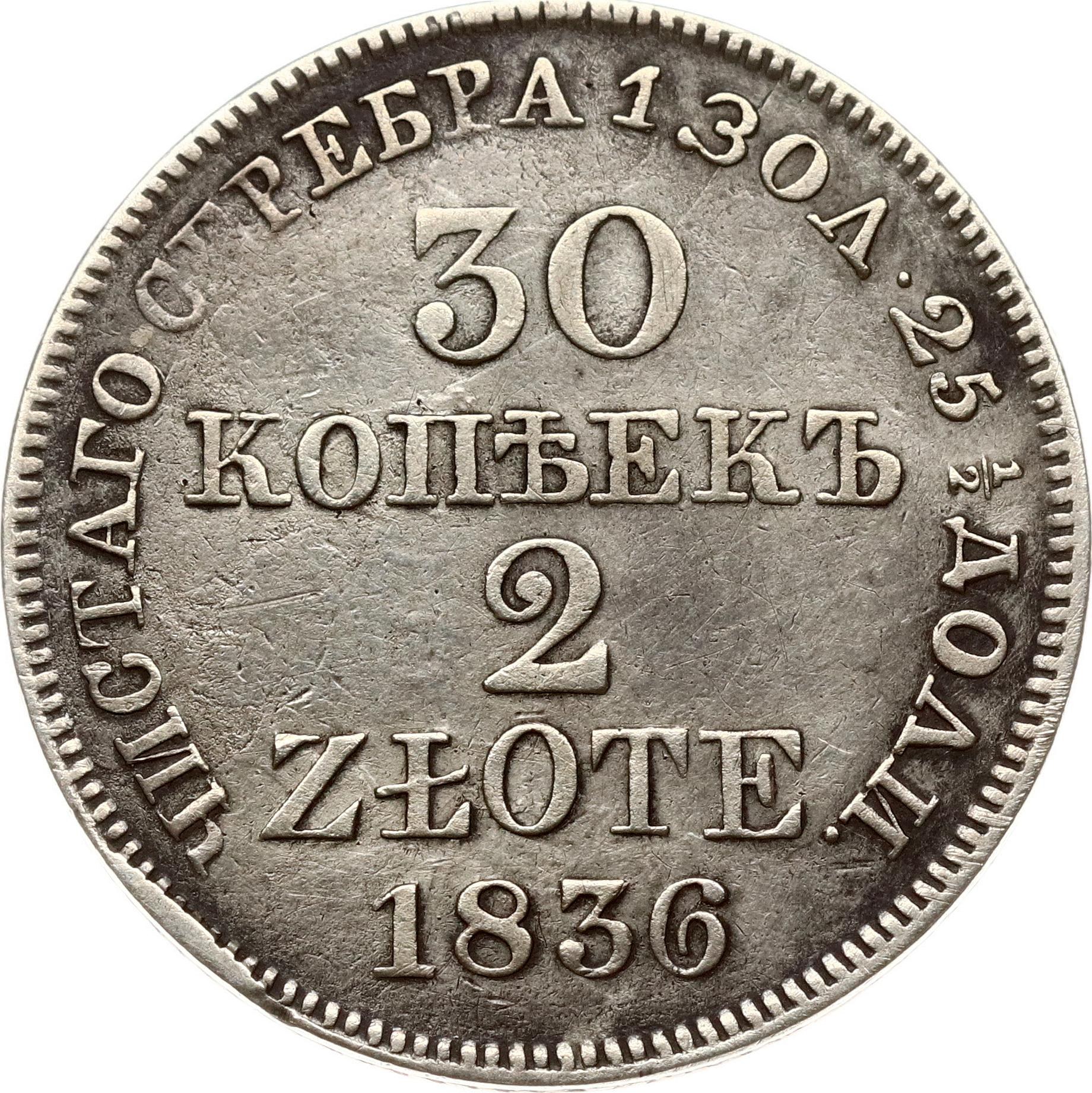Russian-Polish 30 Kopecks - 2 Zlotych 1836 MW
