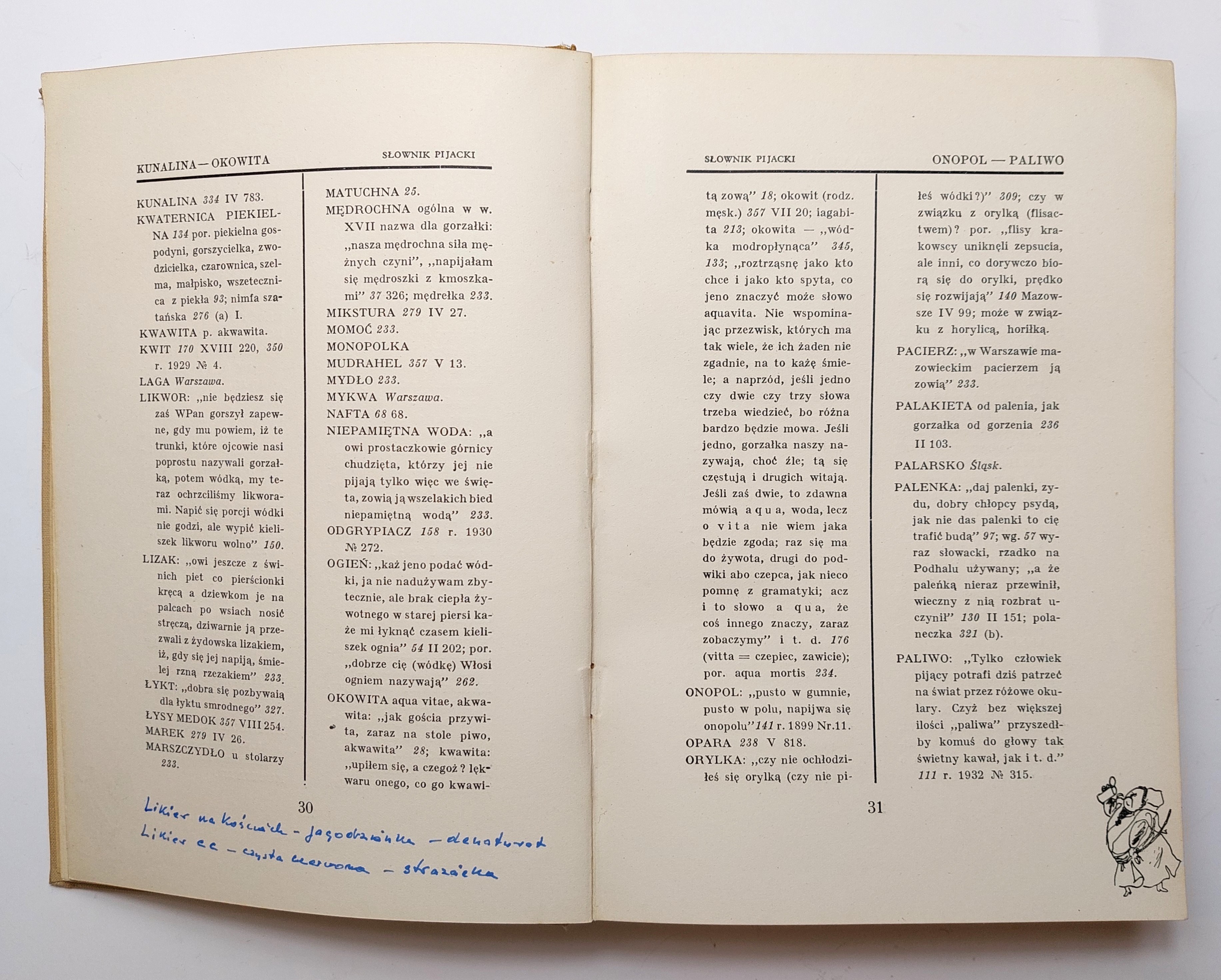 Oprawa wydawnicza, płótno. Egzemplarz numer 256. Na przedniej wyklejce ekslibris dr Jana Matysiaka. W części słownikowej odręczne wpisy uzupełniające tuwimowskie hasła, wykonane, sądząc po treści w epoce "głębokiego" PRL-u, przez poprzedniego właściciela książki. Przednia wyklejka pęknięta poza tym stan dobry.